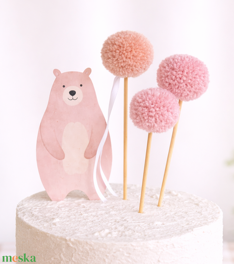 Rózsaszín tortadísz pompon szett – 3 db-os szülinapi dekor