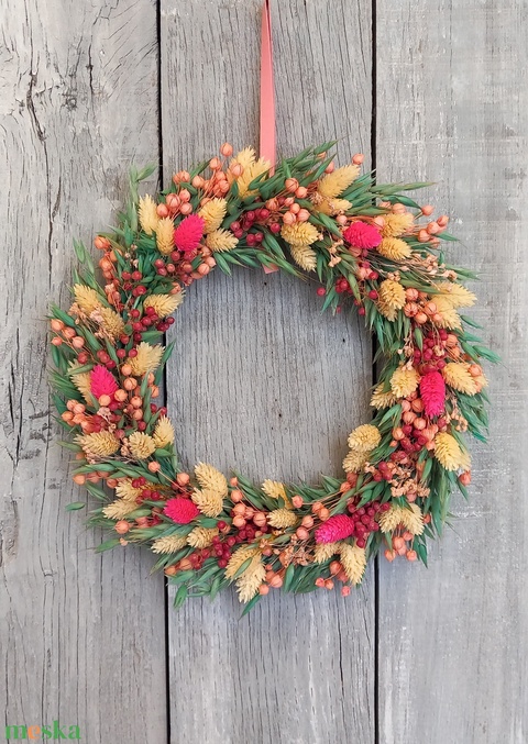- Anyag/Összetevő karikaalap, szárazvirágok, szalag