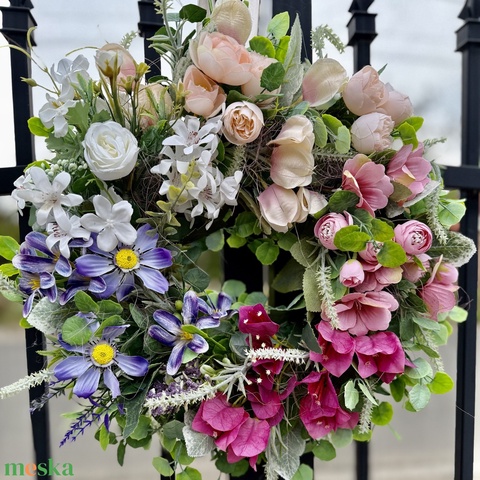 Színátmenetes tavaszi selyemvirágos ajtódísz kopogtató