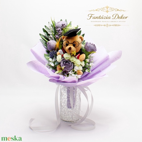 🎓 Ballagási virágcsokor plüss macival – egyedi, kézzel készült ajándék 🎓