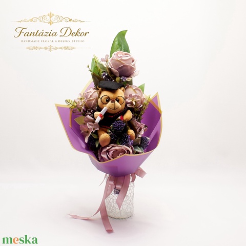 🎓 Ballagási virágcsokor diplomás plüss macival – elegáns, egyedi ajándék 🎓