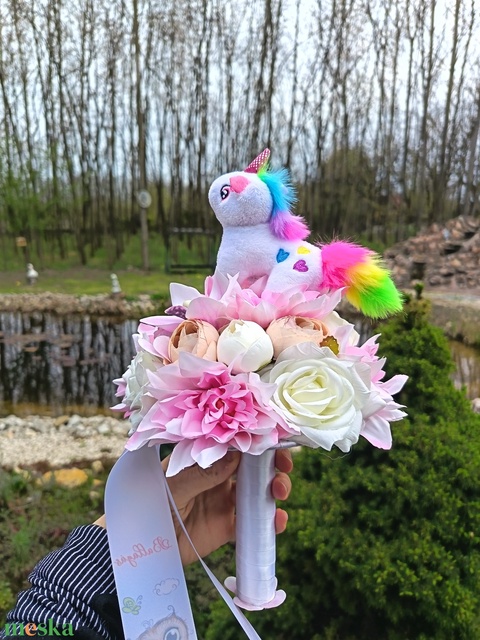 - Anyag/Összetevő plüssfigura, örökvirágok, szaténszalag