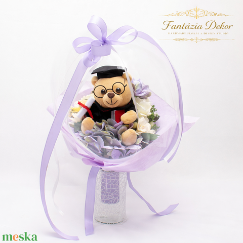 🎓 Egyedi ballagási ajándék lufiban – plüss macis virágcsokor 🎓