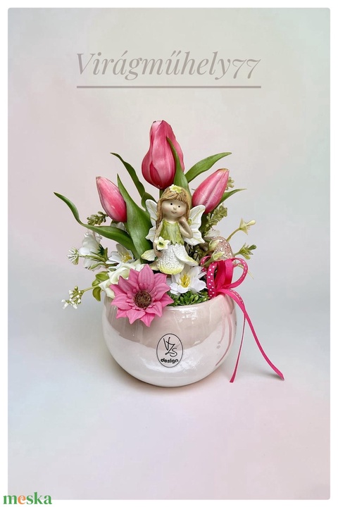 - Anyag/Összetevő kerámia kaspó, művirágok, figura