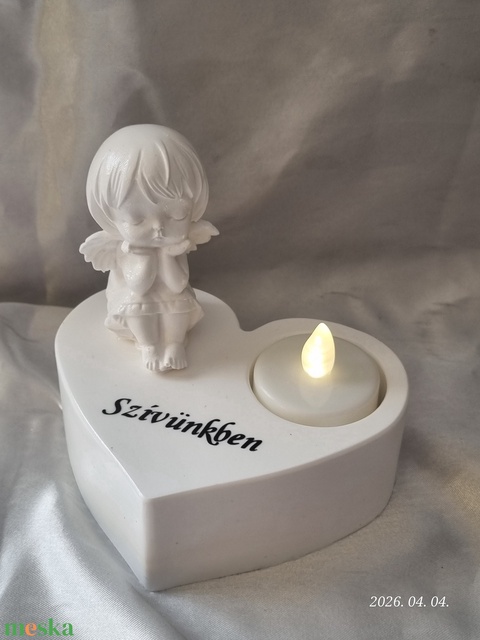 Angyalkás, szives sírdísz, kegyeleti dísz mécsestartóval