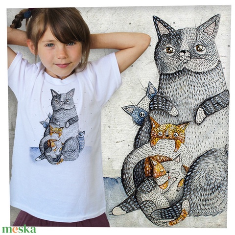 Cica család - Jó minőségű klasszikus gyerekpóló