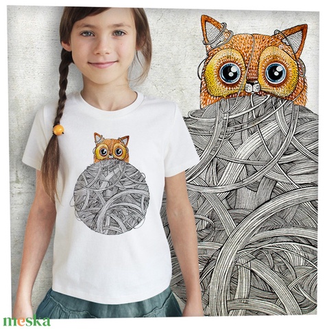 Cica gombolyaggal - Prémium bio gyerekpóló