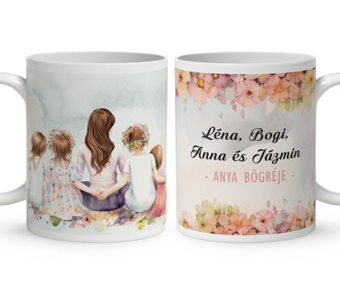 Kérd a neveddel - Anya és a négy gyerek mintás különleges és egyedi bögre | nagyoncuki.hu A bögréinket egytől egyik mi tervezzük :) Éppen emiatt biztos lehetsz benne, hogy máshol nem kapható. A bögrék kiváló minőségűek, éppen emiatt a mindennapos használatot nagyon jól bírják. Persze... kerámiából van, így vigyázz, hogy ne ejtsd le. :) Ezt leszámítva: