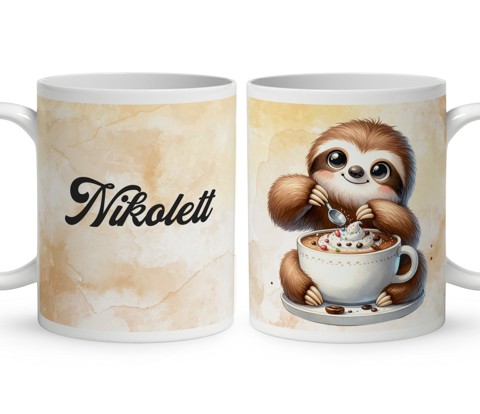 Névvel kérhető - Kávés lajhár egy kis nasival - A tökéletes ajándék lajhár rajongóknak! Imádod a lajhárokat? Szeretnél egy egyedi és különleges bögrét, ami a kedvenc állatodat ábrázolja? Akkor a Kávés lajhár egy kis nasival kerámia bögre tökéletes választás számodra! Ezt a bájos bögrét mi magunk tervezzük, így biztos lehetsz benne, hogy máshol nem találkozhatsz vele! :) Kiváló minőségű kerámiából készült, és egy aranyos lajhár mintával díszített. A bögre űrtartalma ideális a reggeli kávézáshoz vagy a délutáni teázáshoz. Miért válaszd a Cuki Kávés lajhár egy kis nasival kerámia bögrét? Egyedi és különleges design: A bögre egyedi lajhár mintával rendelkezik, ami biztosan elnyeri a tetszésedet. Kiváló minőség: A bögre tartós és strapabíró kerámiából készült, így a mindennapos használatot is jól bírja. Praktikus méret: A bögre űrtartalma ideális a mindennapi használatra. Tökéletes ajándék: A bögre nagyszerű ajándék lehet lajhár rajongóknak, vagy bármilyen alkalomra. Névvel is kérhető: Tedd még személyesebbé az ajándékot, és kérd a lajháros bögrét a megajándékozott nevével! Mosogatógépben mosható: Nem kell aggódnod a kézi mosogatás miatt! Mikróban is használható: Melegítsd meg a teádat vagy a kávédat a mikróban!