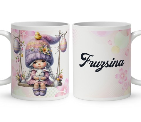 Személyre szabható - Hintázós húsvéti manólány csibével mintás bögre - A legcukibb húsvéti ajándék gyerekeknek és felnőtteknek egyaránt! | nagyoncuki.hu