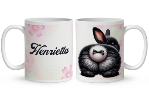 Személyre szabható - Húsvéti Fekete masnis Nyuszi popsi mintás bögre - A legcukibb húsvéti ajándék gyerekeknek és felnőtteknek egyaránt! | nagyoncuki.hu