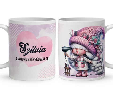 Névvel kérhető - Fodrász manólány hajszárítóval mintás bögre | Különleges ajándék fodrászoknak | nagyoncuki.hu Képzeld el azt a mosolyt a megajándékozott arcán, amikor egy olyan bögrét tart a kezében, amely nemcsak a kedvenc italához nyújt társaságot, hanem a hivatása iránti elismerést is kifejezi! Ez a különleges, egyedi tervezésű bögre a fodrászok és a szépségszalonok világának bájos megtestesítője, egy apró, szeretetteljes gesztus, amely a mindennapokat is feldobja. Ez a bögre a kreativitást és a szakma iránti szenvedélyt ötvözi egy aranyos manólány figurában, aki éppen a fodrászkellékek között sürgölődik. Legyen szó egy ollóról, egy hajszárítóról vagy egy fésűről, a manólány minden eszközt a legnagyobb gondossággal kezel. A dizájn kedves és egyedi, tökéletes ajándék minden olyan fodrász számára, aki szereti a különleges és szívhez szóló meglepetéseket.