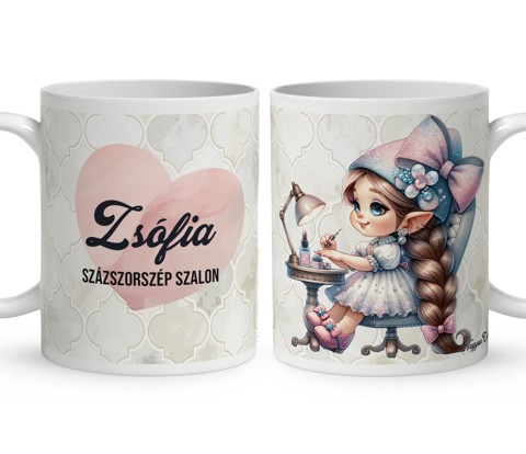 Névvel kérhető - Tündéri körmös manólány mintás bögre | Különleges ajándék műkörmösöknek | nagyoncuki.hu Képzeld el azt a mosolyt a megajándékozott arcán, amikor egy olyan bögrét tart a kezében, amely nemcsak a kedvenc italához nyújt társaságot, hanem a hivatása iránti elismerést és szeretetet is kifejezi! Ez a különleges, egyedi tervezésű bögre a műkörmösök, köröm designerek és a szépségipar csillogó világának bájos megtestesítője, egy apró, szeretetteljes gesztus, amely a mindennapokat is bearanyozza. Ez a bögre a kreativitást, a precizitást és a szakma iránti szenvedélyt ötvözi egy aranyos körmös manólány figurában, aki éppen a legszebb körömdíszítések között sürgölődik. Legyen szó egy apró ecsetről, csillogó strasszkövekről, színes gél lakkokról vagy egy finom reszelőről, a körmös manólány minden eszközt a legnagyobb műgonddal és odaadással használ. A dizájn kedves és egyedi, tökéletes ajándék műkörmösnek, aki szereti a különleges és szívhez szóló meglepetéseket.