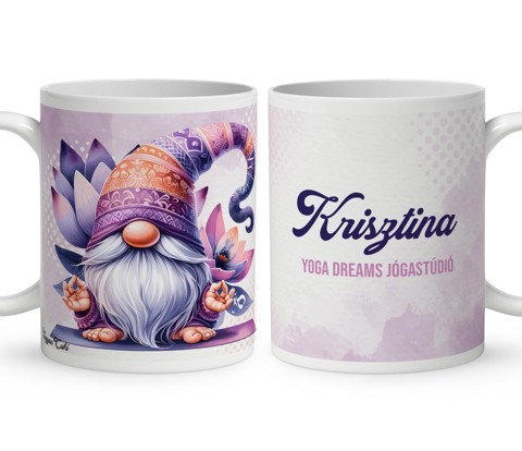 Névvel kérhető - Jóga manó lótusz ülésben mintás bögre | Egyedi Ajándék Jógásoknak, Meditálóknak | nagyoncuki.hu Képzeld el azt a békés mosolyt a megajándékozott arcán, amikor egy olyan bögrét tart a kezében, amely nemcsak a kedvenc reggeli teájához vagy kávéjához nyújt társaságot, hanem a jóga és meditáció iránti szeretetét, a belső harmónia fontosságát is tükrözi! Ez a különleges, egyedi tervezésű jóga manós bögre a mindfulness, a nyugalom és a tudatosság bájos megtestesítője, egy apró, szeretetteljes gesztus, amely a mindennapokat is fénnyel tölti meg. Kiváló ajándék ötlet jógásoknak és mindenkinek, aki értékeli a lelki feltöltődést. Ez a jógás bögre a belső békét, az egyensúlyt és a jelen pillanat megélésének örömét ötvözi egy aranyos, jógázó vagy meditáló manó figurában. Ahogy a manó elmélyül egy ászanában vagy békésen szemlélődik, nyugalmat és pozitív energiákat sugároz. Legyen szó egy frissítő napindító italról vagy egy esti relaxáló teáról, ez a jóga mintás bögre tökéletes társ lesz. A dizájn kedves és egyedi, tökéletes ajándék ötlet meditálóknak és jóga rajongóknak, akik szeretik a különleges és szívhez szóló meglepetéseket. Ezt a bájos bögrét mi magunk, a nagyoncuki.hu csapata terveztük, így biztos lehetsz benne, hogy egy igazán egyedi és különleges jóga mintás ajándék darabbal leped meg szeretteidet vagy magadat! :)