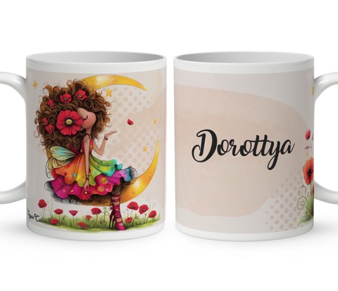 Lepd meg a kedvenc hölgyedet, barátodat, családtagodat vagy saját magadat ezzel a bájos és személyre szabott "Névvel kérhető - Huncut pipacs tündérlány és aranyhold pipacs tündérlány és az aranyhold" mintás bögrével! Rendeld meg most ezt az egyedi, névre szóló tündéres bögrét, és vigyél egy kis extra mesebeli örömet a mindennapokba!