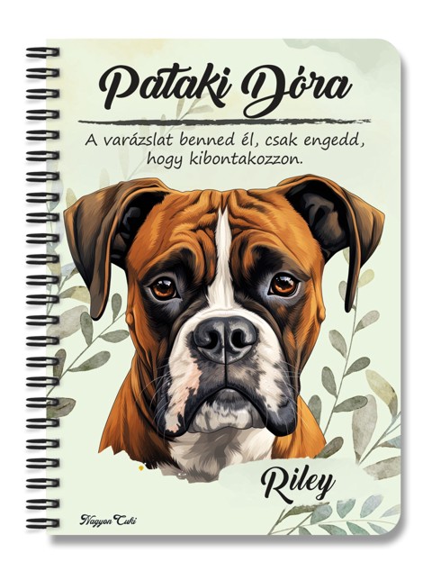 Névvel & Idézettel Kérhető - Barna boxer Portré kutyás Füzet | Egyedi Ajándék Kutyásoknak & Személyre Szabható Kutyás Ajándék | nagyoncuki.hu Minden gazdi tudja, hogy a saját kutyusa a legszebb, legokosabb és legszerethetőbb a világon. Mostantól ezt a büszkeséget és szeretetet magaddal viheted mindenhová ezzel a stílusos, személyre szabható füzettel, amit kedvenc négylábúd portréja díszít. Ez a füzet nemcsak egy egyszerű jegyzetfüzet, hanem egy igazi tisztelgés a gazdi és kutyája közötti különleges kötelék előtt. A portré hűen és szeretettel ragadja meg a Boxer fajta jellegzetes báját és karakterét. Tökéletes választás, ha szeretnéd a legfontosabb jegyzeteidet, terveidet vagy a kutyás kalandjaitok emlékeit egy olyan füzetbe írni, ami igazán közel áll a szívedhez. Legyen szó a kutyaovi emlékeiről, a tréning jegyzeteiről vagy a napi teendőkről, ez a kutyaportrés füzet garantáltan a kedvenced lesz.