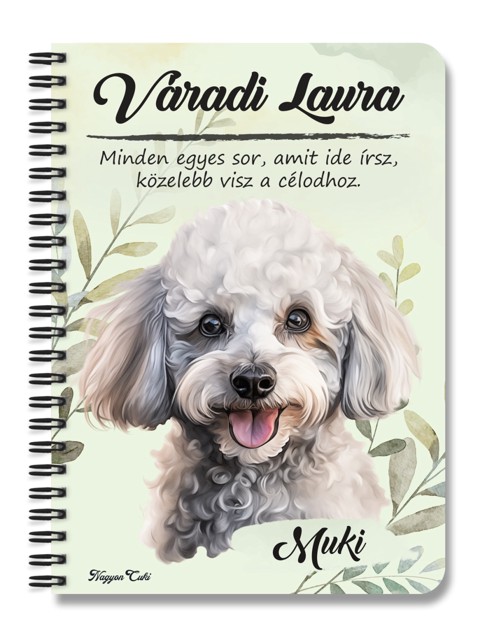 Névvel & Idézettel Kérhető - Kis fehér uszkár portré kutyás Füzet | Egyedi Ajándék Kutyásoknak & Személyre Szabható Kutyás Ajándék | nagyoncuki.h Minden gazdi tudja, hogy a saját kutyusa a legszebb, legokosabb és legszerethetőbb a világon. Mostantól ezt a büszkeséget és szeretetet magaddal viheted mindenhová ezzel a stílusos, személyre szabható füzettel, amit kedvenc négylábúd portréja díszít. Ez a füzet nemcsak egy egyszerű jegyzetfüzet, hanem egy igazi tisztelgés a gazdi és kutyája közötti különleges kötelék előtt. A portré hűen és szeretettel ragadja meg a Kis fehér uszkár fajta jellegzetes báját és karakterét. Tökéletes választás, ha szeretnéd a legfontosabb jegyzeteidet, terveidet vagy a kutyás kalandjaitok emlékeit egy olyan füzetbe írni, ami igazán közel áll a szívedhez. Legyen szó a kutyaovi emlékeiről, a tréning jegyzeteiről vagy a napi teendőkről, ez a kutyaportrés füzet garantáltan a kedvenced lesz.