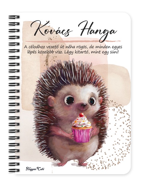 Névvel & Idézettel Kérhető Sütis sünike Mintás Füzet | Egyedi Ajándék Süni Rajongóknak & Személyre Szabható Állatos Füzet | nagyoncuki.hu Képzeld el, ahogy egy hűvös délutánon, egy meleg takaró alatt, forró teát szürcsölve a kezedben pihen ez a cuki füzet, amit a természet egyik legbájosabb teremtménye, egy aranyos süni díszít. Ez a személyre szabott füzet nemcsak egy hely a jegyzeteidnek, hanem egy szeretetteljes emlékeztető a természet csendes szépségére és a kedvesség fontosságára. Ez a kis tüskésgombóc, ahogy kíváncsian pislog a borítóról, a gyengédség, a kíváncsiság és a természetközeli nyugalom szimbóluma. Tökéletes választás, ha a legkedvesebb gondolataidat, a napi teendőidet vagy kreatív ötleteidet szeretnéd egy olyan helyen őrizni, ami melegséggel és bájjal tölti meg a szívedet. A dizájn kedves és barátságos, így kiváló ajándék ötlet a sünik rajongóinak és mindenkinek, aki értékeli a szívhez szóló, személyes meglepetéseket. Ezt a bájos füzetet mi magunk, a nagyoncuki.hu csapata terveztük, így biztos lehetsz benne, hogy egy igazán különleges, magyar dizájnnal készült darabbal leped meg szeretteidet vagy magadat! :) Miért válaszd ezt a névre szóló tündéri sünis füzetet? Teljesen Személyre Szabható: Tedd 100%-ban egyedivé! A borítóra nemcsak a nevedet kérheted, de a mintán szereplő alap idézetet is lecserélheted a saját, kedvenc motivációs üzenetedre vagy egy személyes gondolatra. Imádnivaló Süni Dizájn: A cuki süni grafika garantáltan mosolyt csal mindenki arcára, kortól függetlenül. Egy igazi cukiságbomba! Praktikus és Minőségi: A füzet két méretben (A5 és A6) elérhető. A strapabíró spirálkötés és a 60 minőségi, vonalas lap (120 oldal) gondoskodik a kényelmes használatról. Extra Meglepetés: Minden füzethez egy ajándék post-it szett is jár, hogy a legfontosabb gondolatok mindig szem előtt lehessenek. Tökéletes Ajándék Természetbarátoknak: Ideális ajándék születésnapra, névnapra, vagy csak úgy, meglepetésként valakinek, aki odavan a cuki erdei állatokért. Kinek ideális ajándék ez a cuki süni mintás füzet? A sünik rajongóinak: Mindenkinek, akinek megdobban a szíve egy aranyos süni láttán. Természetbarátoknak: Akik szeretik az erdei állatokat és a természet ihlette dizájnokat. Kreatív lelkeknek: Naplóíráshoz, rajzoláshoz, ötleteléshez. Gyerekeknek és felnőtteknek egyaránt: Hiszen a sünik kedvességét nem lehet kinőni. Bárkinek, aki egy cseppnyi kedvességre vágyik: Ez a füzet garantáltan feldobja a borúsabb napokat is. Termékjellemzők: Méretek: Választható A5 (kb. 13,5 cm x 21 cm) vagy A6 (kb. 10,5 cm x 14,5 cm) Borító: Személyre szabható névvel és/vagy egyedi idézettel, matt felülettel Belső: Kb. 60 csíkos lap (120 oldal), tetején "memo" és "Subject" segédlettel Kötés: Praktikus és tartós fekete fémspirál Extra: Ajándék post-it szett a füzet elején Egyedi felirattal is kérhető: Ne felejtsd el megadni a kért nevet és/vagy az egyedi idézetet a megjegyzés rovatban rendeléskor! Rendeld meg most ezt a teljesen személyre szabható, egyedi sünis füzetet, és vigyél egy kis erdei kedvességet a mindennapokba! Ha elvarázsolt a Cukiságok kollekció, és tetszenek a személyre szabható ajándék ötleteink, nézd meg a többi cuki állatos termékünket is a nagyoncuki.hu-n! Fedezz fel még több egyedi ajándékot állatbarátoknak és más, lélekemelő témájú csodát!