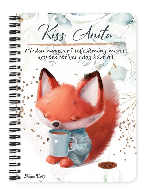Névvel & Idézettel Kérhető Kávés Róka Mintás Füzet | Egyedi Ajándék Róka Rajongóknak | nagyoncuki.hu Képzeld el, hogy a reggeli kávéd mellett ott lapul ez a huncut kis róka, aki pont olyan kedves mosollyal kortyol a bögréjéből, mint te, miközben az első adag koffeinnel feltöltődve készülsz a napi kalandokra. Ez a személyre szabott füzet nemcsak egy hely a jegyzeteidnek, hanem egy vidám emlékeztető arra, hogy egy kis leleményességgel és energiával minden akadály leküzdhető. Ez a kávéimádó róka az éber reggelek, a szellemes ötletek és a vidám kávészünetek szimbóluma. Tökéletes választás, ha a legfontosabb jegyzeteidet, a legleleményesebb terveidet vagy a legkreatívabb gondolataidat szeretnéd egy olyan füzetbe írni, ami inspirál és mosolyt csal az arcodra. A dizájn játékos és barátságos, így kiváló ajándék ötlet a rókák rajongóinak és mindenkinek, aki értékeli a humoros és szívhez szóló, személyes meglepetéseket. A "Cukiságok" kollekció ezen darabját is mi magunk, a nagyoncuki.hu csapata terveztük, így biztos lehetsz benne, hogy egy igazán egyedi, magyar dizájnnal készült ajándékkal leped meg magadat vagy szeretteidet! :) Miért válaszd ezt a személyre szabható kávézós róka füzetet? Teljesen Személyre Szabható: Tedd 100%-ban egyedivé! A borítóra nemcsak a nevedet kérheted, de a mintán szereplő alap idézetet is lecserélheted a saját, kedvenc motivációs üzenetedre vagy egy személyes gondolatra. Huncut Róka Dizájn: A cuki róka és a gőzölgő kávé párosa garantáltan feldobja a napot, és egy kis extra vidámságot csempész a munkába vagy a tanulásba. Praktikus és Minőségi: A füzet két méretben (A5 és A6) elérhető. A strapabíró spirálkötés és a 60 minőségi, vonalas lap (120 oldal) gondoskodik a kényelmes használatról. Extra Meglepetés: Minden füzethez egy ajándék post-it szett is jár, hogy a legfontosabb gondolatok mindig szem előtt lehessenek. Tökéletes Ajándék Kettő az Egyben: Ideális ajándék annak, aki egyszerre rajong a rókákért és a kávéért – két legyet egy csapásra! Kinek ideális ajándék ez a cuki róka mintás füzet? A rókák szerelmeseinek: Mindenkinek, akit elvarázsol a rókák játékos bája. Kávérajongóknak: Akiknek a kávé a napi betevő energiaforrásuk. Kreatív szakembereknek és diákoknak: Akiknek szükségük van egy kis inspirációra és humorra a nagy ötletekhez. Barátoknak, kollégáknak: Akiknek a személyiségéhez passzol egy ilyen vidám, szellemes ajándék. Bárkinek, aki szereti az egyedi, nem szokványos állatos dizájnokat. Termékjellemzők: Méretek: Választható A5 (kb. 13,5 cm x 21 cm) vagy A6 (kb. 10,5 cm x 14,5 cm) Borító: Személyre szabható névvel és/vagy egyedi idézettel, matt felülettel Belső: Kb. 60 csíkos lap (120 oldal), tetején "memo" és "Subject" segédlettel Kötés: Praktikus és tartós fekete fémspirál Extra: Ajándék post-it szett a füzet elején Egyedi felirattal is kérhető: Ne felejtsd el megadni a kért nevet és/vagy az egyedi idézetet a megjegyzés rovatban rendeléskor! Ha elvarázsolt ez a huncut dizájn, és tetszenek a személyre szabható ajándék ötleteink, nézd meg a többi aranyos figurát is a Cukiságok kollekció a nagyoncuki.hu-n! Fedezz fel még több egyedi ajándékot állatbarátoknak és más, vidám témájú csodát!
