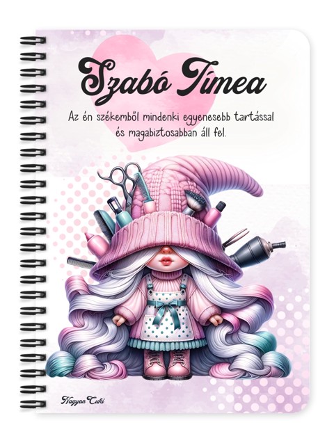 Névvel & Idézettel Kérhető Cuki Fodrász manólány mintás Füzet | Egyedi Ajándék Fodrásznak | nagyoncuki.hu Képzeld el, ahogy átadod ezt a cuki füzetet a kedvenc fodrászodnak, akinek a kezei között mindig újjászületsz! Ez a személyre szabott füzet több mint egy jegyzetfüzet: egy kedves "köszönöm" a kreativitásáért, a türelméért és a sok jó beszélgetésért, amit a székében ülve megosztotok egymással. Ez a kis ollóval és fésűvel felszerelkezett manólány a stílus, a szépség és az alkotás iránti szenvedély szimbóluma. Tökéletes választás egy fodrász számára, hogy feljegyezze benne a vendégei időpontjait, inspirációkat gyűjtsön új frizurákhoz, vagy vezesse a saját üzleti teendőit. A dizájn vidám és elismerő, így kiváló ajándék ötlet, amivel kifejezheted a háládat. A "Cuki manók" kollekció ezen darabját is mi magunk, a nagyoncuki.hu csapata terveztük, így biztos lehetsz benne, hogy egy igazán egyedi, magyar dizájnnal készült ajándékkal leped meg a kedvenc szakemberedet. :)