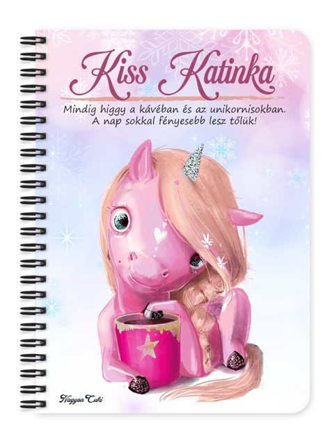 Névvel & Idézettel Kérhető Kávézós Unikornis Füzet Mintás Füzet | Egyedi Ajándék Unikornis és Kávé Rajongóknak | nagyoncuki.hu Képzeld el, hogy a reggeli kávéd mellett nemcsak gőz, hanem egy csipetnyi csillámpor is felszáll! Ez a kávéimádó unikornis pontosan tudja, hogy a varázslatos napok egy jó adag koffeinnel indulnak. Ő a tökéletes társ, aki emlékeztet rá, hogy a te napod is lehet mágikus, csak egy kis extra lökés kell hozzá. Ez a bögrét szorongató unikornis a bizonyíték, hogy a varázslat és a hétköznapok tökéletesen megférnek egymás mellett. Ő a nagy álmok és a produktív reggelek szimbóluma; megmutatja, hogy a fantasztikus teremtményeknek is szükségük van néha egy finom kávéra a nagy tettekhez. Tökéletes választás, ha a legfontosabb gondolataidat, a legmerészebb álmaidat vagy a napi teendőidet szeretnéd egy olyan füzetbe írni, ami egyszerre inspiráló és végtelenül cukit. A "Cukiságok" kollekció ezen darabját is mi magunk, a nagyoncuki.hu csapata terveztük, így biztos lehetsz benne, hogy egy igazán egyedi, magyar dizájnnal készült ajándékkal leped meg magadat vagy szeretteidet! :) Miért válaszd ezt a személyre szabható kávézós unikornis füzetet? Teljesen Személyre Szabható: Tedd 100%-ban egyedivé! A borítóra nemcsak a nevedet kérheted, de a mintán szereplő alap idézetet is lecserélheted a saját, kedvenc motivációs üzenetedre vagy egy személyes gondolatra. Cuki Unikornis Dizájn: Az unikornisok misztikus világa és a kávézás hétköznapi rituáléja egyedi és cuki kombinációt alkot. Praktikus és Minőségi: A füzet két méretben (A5 és A6) elérhető. A strapabíró spirálkötés és a 60 minőségi, vonalas lap (120 oldal) gondoskodik a kényelmes használatról. Extra Meglepetés: Minden füzethez egy ajándék post-it szett is jár, hogy a legfontosabb gondolatok mindig szem előtt lehessenek. Tökéletes Ajándék Álmodozóknak: Ideális ajándék születésnapra, névnapra, vagy csak úgy, meglepetésként valakinek, aki hisz a varázslatban és a kávé erejében! Kinek ideális ajándék ez a cuki kávézós unikornis mintás füzet? Unikornis rajongóknak: Mindenkinek, aki imádja ezeket a mitikus lényeket. Kávéimádóknak, akik hisznek a varázslatban: Akik tudják, hogy a reggeli kávéjukban ott rejlik a napi csoda. Álmodozó lelkeknek: Akik szeretik a mesés, fantáziadús kiegészítőket. Diákoknak, kollégáknak: Akik egy kis csillogást és vidámságot szeretnének vinni a tanulásba vagy a munkába. Bárkinek, aki egy igazán egyedi és mosolyt fakasztó ajándékot keres. Termékjellemzők: Méretek: Választható A5 (kb. 13,5 cm x 21 cm) vagy A6 (kb. 10,5 cm x 14,5 cm) Borító: Személyre szabható névvel és/vagy egyedi idézettel, matt felülettel Belső: Kb. 60 csíkos lap (120 oldal), tetején "memo" és "Subject" segédlettel Kötés: Praktikus és tartós fekete fémspirál Extra: Ajándék post-it szett a füzet elején Egyedi felirattal is kérhető: Ne felejtsd el megadni a kért nevet és/vagy az egyedi idézetet a megjegyzés rovatban rendeléskor! Rendeld meg most ezt a teljesen személyre szabható, egyedi unikornis füzetet, és töltsd fel a napjaidat mágikus energiával. Ha elvarázsolt ez a tündéri dizájn, és tetszenek a személyre szabható ajándék ötleteink, nézd meg a többi aranyos figurát is a Cukiságok kollekció a nagyoncuki.hu-n! Fedezz fel még több egyedi ajándékot és más, varázslatos témájú csodát!