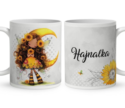 Indítsd a napot egy adag napsugaras bájjal ezzel a névre szóló, cuki napraforgós tündérlányos bögrével.