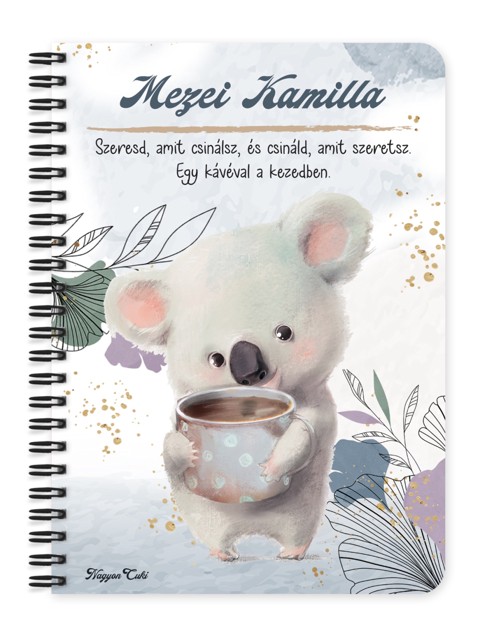 Névvel & Idézettel Kérhető Kakaós Koala Füzet | Egyedi Ajándék Koala Rajongóknak | nagyoncuki.hu Képzeld el a tökéletes pihenést: kint hűvös van, te pedig egy puha fotelben ülsz, a kezedben egy bögre forró kakaóval. Pontosan ezt az érzést ragadja meg ez a füzet, aminek a borítójáról a világ legálmosabb kisállata, egy cuki koala mosolyog rád, miközben a saját bögréjét öleli. Ő a tökéletes emlékeztető: néha a legjobb dolog, amit tehetünk, ha csak megállunk egy pillanatra, és élvezzük a kényelmet. Ez a kakaóimádó koala a pihenés, a feltöltődés és a "ma semmit sem csinálok" napok puha, szőrös nagykövete. Arra tanít, hogy a pihenés nem lustaság, hanem a gondoskodás egyik legfontosabb formája. Tökéletes választás naplóíráshoz, a legkedvesebb gondolatok feljegyzéséhez, vagy egy jó könyv melletti jegyzeteléshez, miközben egy meleg takaróba burkolózol. A "Cukiságok" kollekció ezen darabját is mi magunk, a nagyoncuki.hu csapata terveztük, így biztos lehetsz benne, hogy egy igazán egyedi, magyar dizájnnal készült ajándékkal leped meg magadat vagy egy másik koala rajongót! :) Miért válaszd ezt a személyre szabható cuki koala mintás füzetet? Teljesen Személyre Szabható: Tedd 100%-ban egyedivé! A borítóra nemcsak a nevedet kérheted, de a mintán szereplő alap idézetet is lecserélheted a saját, kedvenc motivációs üzenetedre vagy egy személyes gondolatra. Imádnivalóan kedves Dizájn: A koalák bája és a forró kakaó melegsége egy olyan kombináció, ami garantáltan megdobogtatja a szíveket. Praktikus és Minőségi: A füzet két méretben (A5 és A6) elérhető. A strapabíró spirálkötés és a 60 minőségi, vonalas lap (120 oldal) gondoskodik a kényelmes használatról. Extra Meglepetés: Minden füzethez egy ajándék post-it szett is jár, hogy a legfontosabb gondolatok mindig szem előtt lehessenek. TTökéletes Ajándék a Pihenésért:Ideális ajándék születésnapra, névnapra, vagy csak úgy, hogy egy kis nyugalmat és kényeztetést ajándékozz valakinek, aki megérdemli! Kinek ideális ajándék ez a cuki kakaós koala mintás füzet? Minden koala-rajongónak: Akik odavannak ezekért a békés, ölelnivaló erszényesekért. A "hygge" és a bekuckózás szerelmeseinek: Akik számára a kényelem és a melegség a legfontosabb. Akiknek szükségük van egy kis emlékeztetőre a pihenés fontosságáról egy rohanó világban. Barátoknak, családtagoknak, akik megérdemelnek egy kis kényeztetést és énidőt. Termékjellemzők: Méretek: Választható A5 (kb. 13,5 cm x 21 cm) vagy A6 (kb. 10,5 cm x 14,5 cm) Borító: Személyre szabható névvel és/vagy egyedi idézettel, matt felülettel Belső: Kb. 60 csíkos lap (120 oldal), tetején "memo" és "Subject" segédlettel Kötés: Praktikus és tartós fekete fémspirál Extra: Ajándék post-it szett a füzet elején Egyedi felirattal is kérhető: Ne felejtsd el megadni a kért nevet és/vagy az egyedi idézetet a megjegyzés rovatban rendeléskor! Rendeld meg most ezt a teljesen személyre szabható, egyedi koala füzetet, és merülj el a pihentető cukiság világában...mert mindenkinek jár egy kis cukiság. Ha elvarázsolt ez a kedves dizájn, és tetszenek a személyre szabható ajándék ötleteink, nézd meg a többi aranyos figurát is a Cukiságok kollekció a nagyoncuki.hu-n! Fedezz fel még több egyedi ajándékot állatbarátoknak és más, vidám témájú csodát!