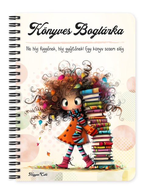 Ezt a bájos füzetet mi magunk, a nagyoncuki.hu csapata terveztük, így biztos lehetsz benne, hogy egy igazi, nagy áruházakban nem kapható különlegességgel leped meg szeretteidet vagy magadat! :) Miért válaszd ezt a bájos könyvmoly lányos füzetet? Teljesen Személyre Szabható: Tedd igazán a tiéddé! A borítóra nemcsak a nevedet kérheted, de egy saját, lélekemelő idézetet, verssort vagy egy fontos gondolatot is elhelyezhetsz rajta. Egyedi, Művészi Dizájn: Ez nem egy tömegtermék. A "furi" stílusú grafika azoknak szól, akik értékelik az eredetiséget és a nem mindennapi szépséget. Praktikus és Minőségi: A füzet két méretben (A5 és A6) elérhető. A strapabíró spirálkötés és a 60 minőségi, vonalas lap (120 oldal) gondoskodik a kényelmes használatról. Extra Meglepetés: Minden füzethez egy ajándék post-it szett is jár, hogy a legfontosabb gondolatok mindig szem előtt lehessenek.