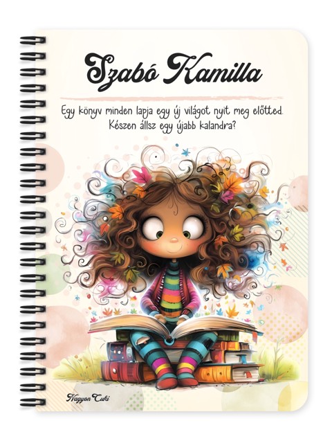 Ezt a bájos füzetet mi magunk, a nagyoncuki.hu csapata terveztük, így biztos lehetsz benne, hogy egy igazi, nagy áruházakban nem kapható különlegességgel leped meg szeretteidet vagy magadat! :) Miért válaszd ezt a bájos könyvmoly lányos füzetet? Teljesen Személyre Szabható: Tedd igazán a tiéddé! A borítóra nemcsak a nevedet kérheted, de egy saját, lélekemelő idézetet, verssort vagy egy fontos gondolatot is elhelyezhetsz rajta. Egyedi, Művészi Dizájn: Ez nem egy tömegtermék. A "furi" stílusú grafika azoknak szól, akik értékelik az eredetiséget és a nem mindennapi szépséget. Praktikus és Minőségi: A füzet két méretben (A5 és A6) elérhető. A strapabíró spirálkötés és a 60 minőségi, vonalas lap (120 oldal) gondoskodik a kényelmes használatról. Extra Meglepetés: Minden füzethez egy ajándék post-it szett is jár, hogy a legfontosabb gondolatok mindig szem előtt lehessenek.
