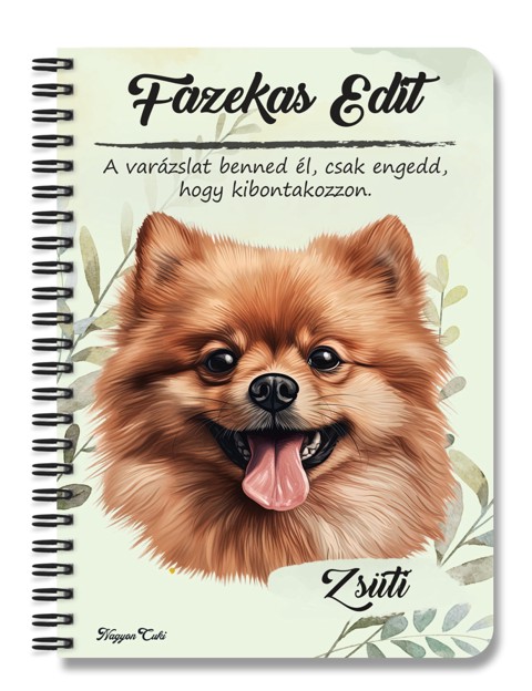 Névvel & Idézettel Kérhető - Barna pomerániai törpespicc portré kutyás Füzet | Egyedi Ajándék Kutyásoknak & Személyre Szabható Kutyás Ajándék | nagyoncuki.h Minden gazdi tudja, hogy a saját kutyusa a legszebb, legokosabb és legszerethetőbb a világon. Mostantól ezt a büszkeséget és szeretetet magaddal viheted mindenhová ezzel a stílusos, személyre szabható füzettel, amit kedvenc négylábúd portréja díszít. Ez a füzet nemcsak egy egyszerű jegyzetfüzet, hanem egy igazi tisztelgés a gazdi és kutyája közötti különleges kötelék előtt. A portré hűen és szeretettel ragadja meg a Barna pomerániai törpespicc fajta jellegzetes báját és karakterét. Tökéletes választás, ha szeretnéd a legfontosabb jegyzeteidet, terveidet vagy a kutyás kalandjaitok emlékeit egy olyan füzetbe írni, ami igazán közel áll a szívedhez. Legyen szó a kutyaovi emlékeiről, a tréning jegyzeteiről vagy a napi teendőkről, ez a kutyaportrés füzet garantáltan a kedvenced lesz.