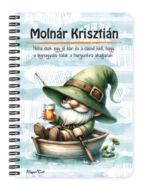 Névvel & Idézettel Kérhető Horgász manó és egy korsó sör mintás Füzet | Legjobb ajándék Horgászoknak | nagyoncuki.hu Képzeld el a tökéletes csendet a tóparton, a víz felszínén táncoló fényeket és a nyugodt várakozás izgalmát. Ezt a békés hangulatot ragadja meg a füzet borítója, ahol egy kedves kis manó ül a stégen, horgászbottal a kezében, várva a nagy kapásra. Ő a türelem, a természet szeretete és a horgászat örömének apró, szakállas nagykövete. Ez a horgász manó a nyugodt vízparti reggelek és a büszke "ez mekkora volt!" történetek szimbóluma. Arra inspirál, hogy a legjobb fogásokat, a legsikeresebb csalikat, a bevált helyeket és a legkedvesebb horgászemlékeket egy olyan helyen gyűjtsd össze, ami méltó ehhez a csodás hobbihoz. Tökéletes választás fogási naplónak, a felszerelés listázásához, vagy egyszerűen csak a gondolatok rendezésére két kapás között. A "Cuki manók" kollekció ezen darabját is mi magunk, a nagyoncuki.hu csapata terveztük, így biztos lehetsz benne, hogy egy igazán egyedi, magyar dizájnnal készült ajándékkal leped meg magadat vagy egy számodra fontos, napsugaras lelkű személyt. :)