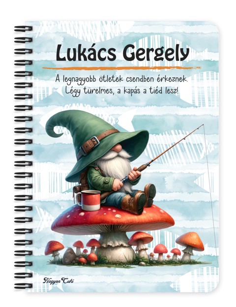 Névvel & Idézettel Kérhető Gombás horgász manó mintás Füzet | Legjobb ajándék Horgászoknak | nagyoncuki.hu Képzeld el a tökéletes csendet a tóparton, a víz felszínén táncoló fényeket és a nyugodt várakozás izgalmát. Ezt a békés hangulatot ragadja meg a füzet borítója, ahol egy kedves kis manó ül a stégen, horgászbottal a kezében, várva a nagy kapásra. Ő a türelem, a természet szeretete és a horgászat örömének apró, szakállas nagykövete. Ez a horgász manó a nyugodt vízparti reggelek és a büszke "ez mekkora volt!" történetek szimbóluma. Arra inspirál, hogy a legjobb fogásokat, a legsikeresebb csalikat, a bevált helyeket és a legkedvesebb horgászemlékeket egy olyan helyen gyűjtsd össze, ami méltó ehhez a csodás hobbihoz. Tökéletes választás fogási naplónak, a felszerelés listázásához, vagy egyszerűen csak a gondolatok rendezésére két kapás között. A "Cuki manók" kollekció ezen darabját is mi magunk, a nagyoncuki.hu csapata terveztük, így biztos lehetsz benne, hogy egy igazán egyedi, magyar dizájnnal készült ajándékkal leped meg magadat vagy egy számodra fontos, napsugaras lelkű személyt. :)