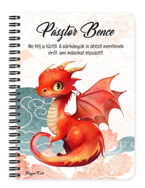 Névvel & Idézettel Kérhető A legédesebb tűzsárkány mintás Füzet | Egyedi Ajándék Fantasy és sárkány rajongóknak| nagyoncuki.hu Képzeld el, hogy a legnagyobb kalandjaidat és legmerészebb ötleteidet egy hűséges, pikkelyes társ őrzi! Ez a füzet, aminek borítójáról egy barátságos kis sárkány mosolyog rád, pontosan erre született: hogy a te személyes legendáriumod legyen, tele nagy tervekkel, fantasztikus történetekkel és legyőzött kihívásokkal. Ez a sárkány a belső erő, a bátorság és a korlátlan fantázia szimbóluma. Azt üzeni, hogy benned is ott lakozik egy hatalmas erő, amivel bármilyen akadályt legyőzhetsz. Tökéletes társ a világmegváltó tervek, a fantáziavilágok felépítése vagy a napi teendők bátor legyőzéséhez! :) A "Cukiságok" kollekció ezen darabját is mi magunk, a nagyoncuki.hu csapata terveztük, így biztos lehetsz benne, hogy egy igazán egyedi, hazai dizájnnal készült ajándékkal leped meg magadat vagy egy másik kalandvágyó lelket! Miért válaszd ezt a személyre szabható sárkány mintás füzetet? Teljesen Személyre Szabható: Tedd 100%-ban egyedivé! A borítóra nemcsak a nevedet kérheted, de a mintán szereplő alap idézetet is lecserélheted a saját, bátorító mottódra vagy egy kedvenc fantasy idézetedre. Kalandra Hívó Dizájn: A barátságos sárkány figura egyszerre cuki és erőt adó, tökéletes inspiráció a nagy álmok megvalósításához. Praktikus és Minőségi: A füzet két méretben (A5 és A6) elérhető. A strapabíró spirálkötés és a 60 minőségi, vonalas lap (120 oldal) gondoskodik a kényelmes használatról. Extra Meglepetés: Minden füzethez egy ajándék post-it szett is jár, hogy a legfontosabb gondolatok mindig szem előtt lehessenek. Tökéletes AjándékKalandoroknak: Ideális ajándék születésnapra, névnapra, vagy bátorításként valakinek, aki nagy kihívás előtt áll. Kinek ideális ajándék ez a cuki sárkányos füzet? Minden sárkányimádónak, kortól és nemtől függetlenül. A fantasy könyvek, filmek és játékok rajongóinak. Kalandvágyó lelkeknek, akik nagyot álmodnak és nem félnek a kihívásoktól. Gyerekeknek, akik most ismerkednek az olvasás és az írás csodájával. Bárkinek, akinek egy kis extra bátorságra van szüksége a céljai eléréséhez. Termékjellemzők: Méretek: Választható A5 (kb. 13,5 cm x 21 cm) vagy A6 (kb. 10,5 cm x 14,5 cm) Borító: Személyre szabható névvel és/vagy egyedi idézettel, matt felülettel Belső: Kb. 60 csíkos lap (120 oldal), tetején "memo" és "Subject" segédlettel Kötés: Praktikus és tartós fekete fémspirál Extra: Ajándék post-it szett a füzet elején Egyedi felirattal is kérhető: Ne felejtsd el megadni a kért nevet és/vagy az egyedi idézetet a megjegyzés rovatban rendeléskor! Rendeld meg most ezt a teljesen személyre szabható, egyedi sárkányos füzetet, és engedd szabadjára a benned rejlő erőt...mert mindenkinek jár egy kis cukiság. Ha elvarázsolt ez a misztikus dizájn, és tetszenek a személyre szabható ajándék ötleteink, nézd meg a többi aranyos figurát is a Cukiságok kollekció a nagyoncuki.hu-n! Fedezz fel még több egyedi ajándékot és más, mesés témájú csodát!