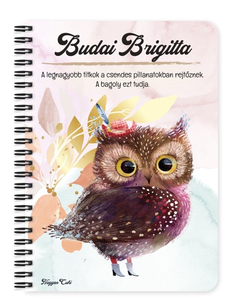 Névvel & Idézettel Kérhető Cuki kalapos bagoly Mintás Füzet | Egyedi Ajándék Bagoly Rajongóknak és a Tudás szerelmeseinek | nagyoncuki.hu Képzeld el, ahogy az esti csendben, egy lámpa fényénél leülsz, hogy papírra vesd a gondolataidat, és a füzet borítójáról egy bölcs kis bagoly figyel rád. Ő a tudás, az elmélyült gondolatok és a titkok tudójának szimbóluma, a tökéletes társ a nagy ötletek megszületéséhez. Ez a cuki bagoly a bölcsesség és a tanulás iránti szeretetet testesíti meg. Arra inspirál, hogy a legfontosabb jegyzeteidet, a legkreatívabb ötleteidet vagy a legmélyebb érzéseidet egy olyan helyen őrizd, ami segít a fókuszálásban és a gondolatok rendszerezésében. Tökéletes társ a vizsgákra való készüléshez, egy új dolog elsajátításához vagy egyszerűen csak egy jó könyv melletti jegyzeteléshez. A "Cukiságok" kollekció ezen darabját is mi magunk, a nagyoncuki.hu csapata terveztük, így biztos lehetsz benne, hogy egy igazán egyedi, magyar dizájnnal készült ajándékkal leped meg magadat, egy bagoly rajongót vagy egy másik tudásra szomjazó lelket! :) Miért válaszd ezt a személyre szabható cuki baglyos füzetet? Teljesen Személyre Szabható: Tedd 100%-ban egyedivé! A borítóra nemcsak a nevedet kérheted, de a mintán szereplő alap idézetet is lecserélheted a saját, inspiráló mottódra vagy egy kedvenc idézetedre. Bölcs és Bájos Dizájn: A bagoly figura egyszerre sugározza a tudást és az ellenállhatatlan cukiságot, ami minden korosztály számára vonzóvá teszi. Praktikus és Minőségi: A füzet két méretben (A5 és A6) elérhető. A strapabíró spirálkötés és a 60 minőségi, vonalas lap (120 oldal) gondoskodik a kényelmes használatról. Extra Meglepetés: Minden füzethez egy ajándék post-it szett is jár, hogy a legfontosabb gondolatok mindig szem előtt lehessenek. Tökéletes Ajándék a Tanuláshoz:Ideális ajándék tanévkezdésre, vizsgaidőszakra, ballagásra, vagy tanároknak, hogy megköszönd a munkájukat! Kinek ideális ajándék ez a cuki bagoly mintás füzet? Minden bagolyrajongónak, aki imádja ezeket a titokzatos madarakat. Diákoknak, hallgatóknak, tanároknak, akiknek a tudás a szenvedélyük. Könyvmolyoknak és íróknak, akik számára a jegyzetelés a mindennapok része. Éjszakai baglyoknak", akik este a legkreatívabbak és legproduktívabbak. Bárkinek, aki szereti a bölcsességet sugárzó, mégis cuki ajándékokat. Termékjellemzők: Méretek: Választható A5 (kb. 13,5 cm x 21 cm) vagy A6 (kb. 10,5 cm x 14,5 cm) Borító: Személyre szabható névvel és/vagy egyedi idézettel, matt felülettel Belső: Kb. 60 csíkos lap (120 oldal), tetején "memo" és "Subject" segédlettel Kötés: Praktikus és tartós fekete fémspirál Extra: Ajándék post-it szett a füzet elején Egyedi felirattal is kérhető: Ne felejtsd el megadni a kért nevet és/vagy az egyedi idézetet a megjegyzés rovatban rendeléskor! Rendeld meg most ezt a teljesen személyre szabható, egyedi baglyos füzetet, és engedd szárnyalni a gondolataidat...mert mindenkinek jár egy kis cukiság. Ha elvarázsolt ez a tündéri dizájn, és tetszenek a személyre szabható ajándék ötleteink, nézd meg a többi aranyos figurát is a Cukiságok kollekció a nagyoncuki.hu-n! Fedezz fel még több egyedi ajándékot és más, vidám témájú csodát!
