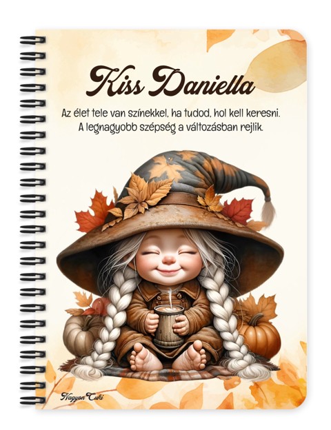 Személyre szabható - Kávézós őszi manó mintás füzet mintás Füzet | Egyedi Ajándék Nőknek & Személyes Napló | nagyoncuki.hu Képzeld el azt a mosolyt a megajándékozott arcán, amikor egy olyan füzetet tart a kezében, ami a legféltettebb gondolatait, álmait vagy fontos jegyzeteit őrzi. Ez a különleges, személyre szabható, egyedi tervezésű őszi manó mintás füzet a könnyed elegancia, a játékos cukiság és a nyugodt, elmélyült pillanatok bájos megtestesítője. Egy apró, szeretetteljes gesztus, amely a mindennapokat is fénnyel tölti meg, és minden lapon új ötletekre sarkall. Kiváló ajándék ötlet nőknek és mindenkinek, aki értékeli a személyes és lélekemelő meglepetéseket. Akár naplóként, jegyzetfüzetként, receptkönyvként vagy ötletfüzetként használod, ez a manós mintás füzet tökéletes társ lesz minden kreatív és meditatív pillanatban. A "Cuki manók" kollekció ezen darabját is mi magunk, a nagyoncuki.hu csapata terveztük, így biztos lehetsz benne, hogy egy igazán egyedi és különleges manós ajándék darabbal leped meg szeretteidet vagy magadat. :) Miért válaszd ezt a cuki őszi manó mintás füzetet? Teljesen Személyre Szabható: Tedd igazán egyedivé! A borítóra nemcsak nevet kérhetsz, de a mintán szereplő alap idézetet is lecserélheted egy saját, személyes és kedves üzenetre. Stílusos és Témába Vágó Dizájn: A cuki áfonyás manó figura garantáltan mosolyt csal mindenki arcára, csak a kezében tartja. Praktikus és Minőségi: A füzet két méretben (A5 és A6) elérhető, így kiválaszthatod a neked legmegfelelőbbet. A strapabíró spirálkötés és a 60 minőségi, vonalas lap (120 oldal) gondoskodik a kényelmes használatról. Extra Meglepetés: Minden füzethez egy ajándék post-it szett is jár, hogy a legfontosabb jegyzetek mindig kéznél legyenek. Tökéletes ajándék nőknek és manórajongóknak: Legyen szó születésnapról, névnapról, karácsonyról, vagy csak egy kedves gesztusról, ez a saját névvel és idézettel kérhető áfonya manós füzet telitalálat. Kinek ideális ajándék ez a cuki áfonyás manó mintás füzet? Nőknek és lányoknak: Mindenkinek, aki a manók, a mesék és a bájos, tündéri stílus rajongója. Az őszi hangulat kedvelőinek: Akik értékelik a meghitt, meleg színeket és a természet inspirálta dizájnokat. A Cuki Manók kollekció gyűjtőinek: Akik szeretnék bővíteni a bájos figurák gyűjteményét, és szeretik az összhangot. Aki szereti a személyre szabott ajándékokat: Ha egyedi, névre szóló füzetet és a mesékhez kapcsolódó ajándékot keresel. Hol használhatod a Cuki áfonya mintás füzetet? Otthon: Naplózáshoz, receptek leírásához, ötleteléshez, vagy akár csak bevásárlólistákhoz. Tökéletes az éjjeliszekrényre, az íróasztalra vagy a kanapé mellé. Irodában/Suliban: Jegyzeteléshez, határidők rögzítéséhez, vagy inspiráló segítőként a kreatív munkához. Dobd fel a mindennapi feladatokat. Ajándékként: Önmagában is egy csodás meglepetés, de akár egy manós vagy őszi témájú ajándékcsomag részeként is tökéletes választás egy manós bögrével vagy poháralátéttel kiegészítve. Termékjellemzők: Méretek: Választható A5 (kb. 13,5 cm x 21 cm) vagy A6 (kb. 10,5 cm x 14,5 cm) Borító: Személyre szabható névvel és/vagy egyedi idézettel, matt felülettel Belső: Kb. 60 csíkos lap (120 oldal), tetején "memo" és "Subject" segédlettel Kötés: Praktikus és tartós fekete fémspirál Extra: Ajándék post-it szett a füzet elején Egyedi felirattal is kérhető: Ne felejtsd el megadni a kért nevet és/vagy az egyedi idézetet. Rendeld meg most ezt a teljesen személyre szabható, egyedi áfonya manós füzetet, és vigyél egy kis extra őszi örömet és inspirációt a mindennapokba... mert mindenkinek jár egy kis cukiság! Ha Ha elvarázsolt a cuki manók világa, és tetszenek a személyre szabható ajándék ötleteink, nézd meg a többi aranyos manós dizájnnal készült termékünket is a "Cuki Manó" Kollekcióban a nagyoncuki.hu-n! Fedezz fel még több egyedi ajándékot és más, vidám témájú csodát!