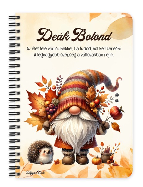 Személyre szabható - Cuki őszi manó sünikével mintás füzet mintás Füzet | Egyedi Ajándék Nőknek & Személyes Napló | nagyoncuki.hu Képzeld el azt a mosolyt a megajándékozott arcán, amikor egy olyan füzetet tart a kezében, ami a legféltettebb gondolatait, álmait vagy fontos jegyzeteit őrzi. Ez a különleges, személyre szabható, egyedi tervezésű őszi manó mintás füzet a könnyed elegancia, a játékos cukiság és a nyugodt, elmélyült pillanatok bájos megtestesítője. Egy apró, szeretetteljes gesztus, amely a mindennapokat is fénnyel tölti meg, és minden lapon új ötletekre sarkall. Kiváló ajándék ötlet nőknek és mindenkinek, aki értékeli a személyes és lélekemelő meglepetéseket. Akár naplóként, jegyzetfüzetként, receptkönyvként vagy ötletfüzetként használod, ez a manós mintás füzet tökéletes társ lesz minden kreatív és meditatív pillanatban. A "Cuki manók" kollekció ezen darabját is mi magunk, a nagyoncuki.hu csapata terveztük, így biztos lehetsz benne, hogy egy igazán egyedi és különleges manós ajándék darabbal leped meg szeretteidet vagy magadat. :) Miért válaszd ezt a cuki őszi manó mintás füzetet? Teljesen Személyre Szabható: Tedd igazán egyedivé! A borítóra nemcsak nevet kérhetsz, de a mintán szereplő alap idézetet is lecserélheted egy saját, személyes és kedves üzenetre. Stílusos és Témába Vágó Dizájn: A cuki áfonyás manó figura garantáltan mosolyt csal mindenki arcára, csak a kezében tartja. Praktikus és Minőségi: A füzet két méretben (A5 és A6) elérhető, így kiválaszthatod a neked legmegfelelőbbet. A strapabíró spirálkötés és a 60 minőségi, vonalas lap (120 oldal) gondoskodik a kényelmes használatról. Extra Meglepetés: Minden füzethez egy ajándék post-it szett is jár, hogy a legfontosabb jegyzetek mindig kéznél legyenek. Tökéletes ajándék nőknek és manórajongóknak: Legyen szó születésnapról, névnapról, karácsonyról, vagy csak egy kedves gesztusról, ez a saját névvel és idézettel kérhető áfonya manós füzet telitalálat. Kinek ideális ajándék ez a cuki áfonyás manó mintás füzet? Nőknek és lányoknak: Mindenkinek, aki a manók, a mesék és a bájos, tündéri stílus rajongója. Az őszi hangulat kedvelőinek: Akik értékelik a meghitt, meleg színeket és a természet inspirálta dizájnokat. A Cuki Manók kollekció gyűjtőinek: Akik szeretnék bővíteni a bájos figurák gyűjteményét, és szeretik az összhangot. Aki szereti a személyre szabott ajándékokat: Ha egyedi, névre szóló füzetet és a mesékhez kapcsolódó ajándékot keresel. Hol használhatod a Cuki áfonya mintás füzetet? Otthon: Naplózáshoz, receptek leírásához, ötleteléshez, vagy akár csak bevásárlólistákhoz. Tökéletes az éjjeliszekrényre, az íróasztalra vagy a kanapé mellé. Irodában/Suliban: Jegyzeteléshez, határidők rögzítéséhez, vagy inspiráló segítőként a kreatív munkához. Dobd fel a mindennapi feladatokat. Ajándékként: Önmagában is egy csodás meglepetés, de akár egy manós vagy őszi témájú ajándékcsomag részeként is tökéletes választás egy manós bögrével vagy poháralátéttel kiegészítve. Termékjellemzők: Méretek: Választható A5 (kb. 13,5 cm x 21 cm) vagy A6 (kb. 10,5 cm x 14,5 cm) Borító: Személyre szabható névvel és/vagy egyedi idézettel, matt felülettel Belső: Kb. 60 csíkos lap (120 oldal), tetején "memo" és "Subject" segédlettel Kötés: Praktikus és tartós fekete fémspirál Extra: Ajándék post-it szett a füzet elején Egyedi felirattal is kérhető: Ne felejtsd el megadni a kért nevet és/vagy az egyedi idézetet. Rendeld meg most ezt a teljesen személyre szabható, egyedi áfonya manós füzetet, és vigyél egy kis extra őszi örömet és inspirációt a mindennapokba... mert mindenkinek jár egy kis cukiság! Ha Ha elvarázsolt a cuki manók világa, és tetszenek a személyre szabható ajándék ötleteink, nézd meg a többi aranyos manós dizájnnal készült termékünket is a "Cuki Manó" Kollekcióban a nagyoncuki.hu-n! Fedezz fel még több egyedi ajándékot és más, vidám témájú csodát!