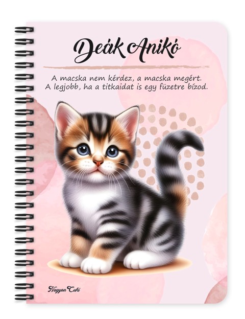 Indítsd a napot (vagy a tervezést) egy dorombolós mosollyal! Ez a névvel kérhető Cuki Cicás füzet nemcsak a titkos álmaidat, a leckédet vagy a teendőidet őrzi, hanem minden pillantással megmelengeti a szívedet. Egy kis szőrös boldogság a táskádban, ami mindig veled van! Tökéletes ajándék cicarajongóknak, vagy saját magadnak, ha szereted a pihe-puha társaságot.