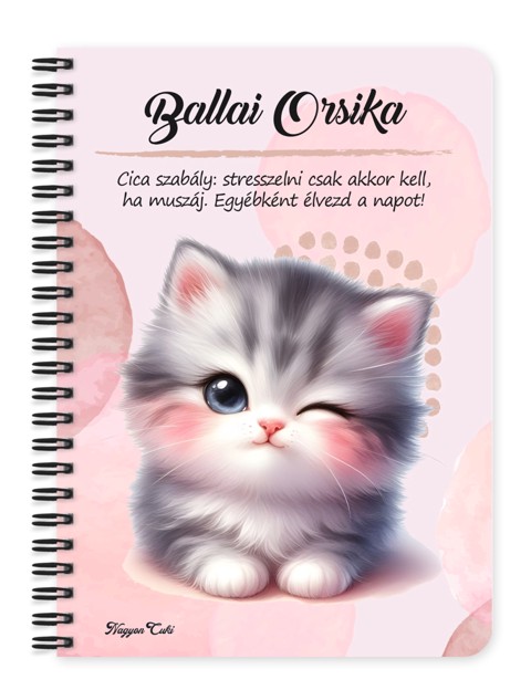 Indítsd a napot (vagy a tervezést) egy dorombolós mosollyal! Ez a névvel kérhető Cuki Cicás füzet nemcsak a titkos álmaidat, a leckédet vagy a teendőidet őrzi, hanem minden pillantással megmelengeti a szívedet. Egy kis szőrös boldogság a táskádban, ami mindig veled van! Tökéletes ajándék cicarajongóknak, vagy saját magadnak, ha szereted a pihe-puha társaságot.