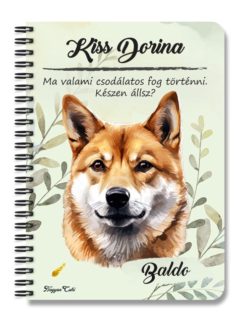 Névvel & Idézettel Kérhető - Shiba inu portré kutyás Füzet | Egyedi Ajándék Kutyásoknak & Személyre Szabható Kutyás Ajándék | nagyoncuki.h Minden gazdi tudja, hogy a saját kutyusa a legszebb, legokosabb és legszerethetőbb a világon. Mostantól ezt a büszkeséget és szeretetet magaddal viheted mindenhová ezzel a stílusos, személyre szabható füzettel, amit kedvenc négylábúd portréja díszít. Ez a füzet nemcsak egy egyszerű jegyzetfüzet, hanem egy igazi tisztelgés a gazdi és kutyája közötti különleges kötelék előtt. A portré hűen és szeretettel ragadja meg a Shiba inu fajta jellegzetes báját és karakterét. Tökéletes választás, ha szeretnéd a legfontosabb jegyzeteidet, terveidet vagy a kutyás kalandjaitok emlékeit egy olyan füzetbe írni, ami igazán közel áll a szívedhez. Legyen szó a kutyaovi emlékeiről, a tréning jegyzeteiről vagy a napi teendőkről, ez a kutyaportrés füzet garantáltan a kedvenced lesz.