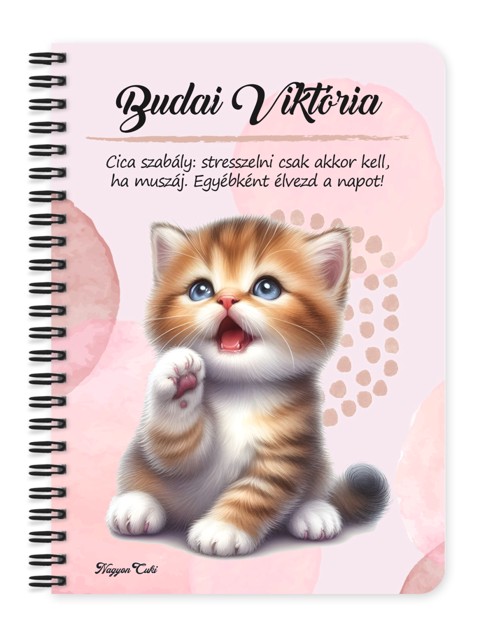 Indítsd a napot (vagy a tervezést) egy dorombolós mosollyal! Ez a névvel kérhető Cuki Cicás füzet nemcsak a titkos álmaidat, a leckédet vagy a teendőidet őrzi, hanem minden pillantással megmelengeti a szívedet. Egy kis szőrös boldogság a táskádban, ami mindig veled van! Tökéletes ajándék cicarajongóknak, vagy saját magadnak, ha szereted a pihe-puha társaságot. Tedd egyedivé: Add meg a nevet, és mi rávarázsoljuk a borítóra! Teendőd: 1. Füzet mérete: Válaszd ki a füzet méretét. 2. Név: Add meg, hogy mi legyen a név a füzeten, ha nem kérsz rá nevet, írd azt, hogy „nem kérek”. 3. Idézet/saját szöveg: ---> a képen látható idézetet kéred: hagyd üresen ezt a részt, nem kell kitöltened. ---> módosítást kérsz: ha más idézetet / szöveget szeretnél, akkor add meg, hogy mi legyen az és mi szívesen módosítjuk :) ---> nem kérsz egyáltalán idézetet: akkor írd azt, hogy „nem kérek”. 4. Tedd a Kosárba. --- Magyar termék, magyar csapat. --- Egyedileg, neked készül minden füzet. Névvel & Idézettel Kérhető Pacsis vörös cicus mintás Füzet | Egyedi Ajándék Macska Rajongóknak | nagyoncuki.hu Képzeld el, ahogy egy rohanó nap közepén egy pillanatra megállsz, és a kezedbe veszed ezt a füzetet. A borítójáról egy cica néz vissza rád békés nyugalommal, emlékeztetve: a legnagyobb rohanásban is van helye a csendes, doromboló pillanatoknak. Ez a cica a belső béke, a stresszoldás és a hűséges, csendes társaság szimbóluma. Nem követel, csak csendben van veled, és a puszta jelenlétével is nyugalmat áraszt. Arra inspirál, hogy a legfontosabb gondolataidat egy békés, rendezett helyen gyűjtsd össze, távol a világ zajától. Tökéletes választás naplóíráshoz, versekhez, vagy egyszerűen csak a gondolatok rendszerezésére! :) A "Cuki cicák" kollekció ezen darabját is mi magunk, a nagyoncuki.hu csapata terveztük, így biztos lehetsz benne, hogy egy igazán egyedi, magyar dizájnnal készült ajándékkal leped meg magadat vagy egy másik macskaimádót! Miért válaszd ezt a személyre szabható a tündéri cica mintás füzetet? Teljesen Személyre Szabható: Tedd 100%-ban egyedivé! A borítóra nemcsak a nevedet kérheted, de a mintán szereplő alap idézetet is lecserélheted a saját, kedvenc motivációs üzenetedre vagy egy személyes gondolatra. Nyugtató és imádnivaló Dizájn: A cica egy univerzális kedvenc. Ez a letisztult, békés grafika garantáltan segít lelassulni és mosolyt csal az arcokra. Praktikus és Minőségi: A füzet két méretben (A5 és A6) elérhető. A strapabíró spirálkötés és a 60 minőségi, vonalas lap (120 oldal) gondoskodik a kényelmes használatról. Extra Meglepetés: Minden füzethez egy ajándék post-it szett is jár, hogy a legfontosabb gondolatok mindig szem előtt lehessenek. Tökéletes Ajándék Cicásoknak: Ideális ajándék születésnapra, névnapra, karácsonyra, vagy csak úgy, hogy meglepd a kedvenc macskás barátodat! Kinek ideális ajándék ez a cuki cica mintás füzet? Minden macskamániásnak: Akiknek az élete a cicák körül forog. Akiknek szükségük van egy kis stresszoldásra a mindennapokban. Gazdiknak: Akik büszkén viselnék a cicájuk nevét egy ilyen cuki füzeten. Kollégáknak, barátoknak: Akiknek szeretnél egy vicces és személyes ajándékot adni, ami feldobja a munkanapokat. Bárkinek, aki értékeli a cuki állatokat és egy különleges ajándékot keres. Termékjellemzők: Méretek: Választható A5 (kb. 13,5 cm x 21 cm) vagy A6 (kb. 10,5 cm x 14,5 cm) Borító: Személyre szabható névvel és/vagy egyedi idézettel, matt felülettel Belső: Kb. 60 csíkos lap (120 oldal), tetején "memo" és "Subject" segédlettel Kötés: Praktikus és tartós fekete fémspirál Extra: Ajándék post-it szett a füzet elején Egyedi felirattal is kérhető: Ne felejtsd el megadni a kért nevet és/vagy az egyedi idézetet a megjegyzés rovatban rendeléskor! Rendeld meg most ezt a teljesen személyre szabható, egyedi cicafüzetet, és indítsd a napot egy dorombolásnyi jókedvvel...mert mindenkinek jár egy kis cukiság. Ha elvarázsolt ez a tündéri dizájn, és tetszenek a személyre szabható ajándék ötleteink, nézd meg a többi aranyos kiscicát is a Cuki cicák a nagyoncuki.hu-n! Fedezz fel még több egyedi ajándékot állatbarátoknak és más, vidám témájú csodát! EGYÉB információ: A termék képei illusztrációk. A képen látható mintát a Te általad választott felirattal, szín, kivitel, grafika szerint a Te kifejezett kérésedre állítjuk elő (vagyis egyedi termék), ezért a termékek megrendelése esetén a 45/2014. (II.26) kormányrendelet 29.§ (1) bekezdés c) pontja szerint nem gyakorolható a 14 napos indoklás nélküli elállási jog. Kérlek minden esetben ellenőrizd le alaposan a visszaigazoló levelet, hogy mindent megadtál-e úgy, ahogy szeretted volna. A megrendelés legyártását követően sajnos utólag már nem áll módunkban módosítani.
