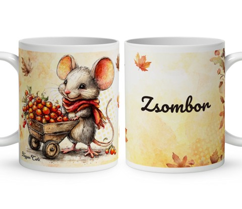Névvel kérhető - Cuki őszi gyűjtögető kisegér mintás bögre | Névre Szóló Ajándék & Személyes Egeres Bögre | nagyoncuki.hu Képzeld el azt a varázslatos mosolyt a megajándékozott arcán, amikor egy olyan bögrét tart a kezében, amely nemcsak a kedvenc reggeli teájához vagy kávéjához nyújt társaságot, hanem a kisegér szelíd báját, az őszi meghittséget és a bekuckózás örömét is tükrözi! Ez a különleges, névre szóló, egyedi tervezésű őszi kisegér bögre a kényelmes pihenés, a bájos cukiság és az Erdei Varázs kollekció szeretetteljes megtestesítője. Egy apró, szeretetteljes gesztus, amely a mindennapokat is fénnyel tölti meg, és inspirációt ad minden kortyhoz. Kiváló ajándék ötlet mindenkinek – legyen szó nőről, férfiról, vagy gyermekről – aki értékeli a személyes és lélekemelő meglepetéseket. Ezt a bájos bögrét mi magunk, a nagyoncuki.hu csapata terveztük,így biztos lehetsz benne, hogy egy igazán egyedi és különleges erdei állat mintás ajándék darabbal leped meg szeretteidet vagy magadat! :) Miért válaszd ezt a névre szóló cuki őszi kisegér mintás bögrét? Egyedi design: A bögre designja szeretettel készült, kifejezetten az egerek, a kávézás és az Erdei Varázs kollekció szerelmesei számára. Igazi kisegér mintás ajándék különlegesség! Személyre szabható: Tedd még különlegesebbé az ajándékot a megajándékozott nevével! Egy igazán egyedi bögre élmény, , ami azt üzeni: "Ez csak a tied!" Minőségi anyag: A bögre tartós kerámiából készült, így hosszú ideig megőrzi a rá nyomtatott kedves mintát és az élénk színeit. Praktikus ajándék: A bögre nem csupán egy dísztárgy, hanem egy hasznos és a mindennapokban is örömmel használt ajándék, ami mindig emlékeztet a figyelmességedre és a szeretet erejére. Univerzális: Nőknek, férfiaknak, gyerekeknek – bárkinek tökéletes választás. Kinek ideális ajándék ez a cuki őszi kisegér mintás bögre? Kisállat és Természet Rajongóknak: Mindenkinek, aki a kisegereket, az erdei állatokat és a bájos, Erdei Varázs stílus rajongója. Az őszi hangulat kedvelőinek: Akik imádják a bekuckózást, a meleg italokat és a meghitt pillanatokat. Egyedi és személyes ajándékot keresőknek: Ha valami igazán különlegeset és névre szólót szeretnél adni. Hol használhatod a ezt az aranyos kisegér mintás bögrét? Otthon: A konyhában, az étkezőben, az íróasztalon, vagy bármely kedvenc olvasó zugodban – bárhol, ahol egy kis őszi hangulatra vágysz. Irodában: Az íróasztalon, hogy a munkahelyeden is legyen egy kis báj és inspiráció. Ajándékként: Önmagában is egy csodás meglepetés, de akár egy őszi témájú ajándékcsomag részeként is tökéletes választás. Termékjellemzők: Űrtartalom: 3 dl (kb. 300-330ml) fehér kerámia bögre, kívül mintával Anyag: 100% prémium minőségű kerámia Kezelés: Mosogatógépben mosható és mikrohullámú sütőben is használható a hosszan tartó minta érdekében. Egyedi felirattal is kérhető: Ne felejtsd el megadni a kért nevet. Elérhető szín: Klasszikus fehér, amelyen a minta gyönyörűen érvényesül.
