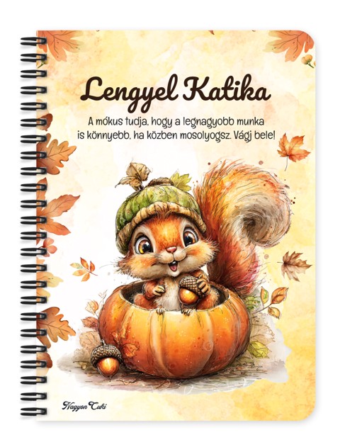 Névvel & Idézettel Kérhető Cuki őszi kis mókus a tökben mintás Füzet | Ajándék ötlet Mókus rajongóknak & Napló, Jegyzetfüzet | nagyoncuki.hu Képzeld el azt a mosolyt és a játékos hangulatot, amikor egy olyan füzetet tartasz a kezedben, amely nemcsak a teendőid és jegyzeteid rendszerezésére szolgál, hanem a mókusok ravasz báját, az őszi kalandot és a szabadság örömét is tükrözi! Ez a különleges, névre szóló, egyedi tervezésű őszi mókus füzet a kényelmes pihenés, a kreativitás és az Erdei Varázs kollekció elragadó megtestesítője. Egy apró, szeretetteljes gesztus, amely a tanulást, a munkát és a jegyzetelést is fénnyel tölti meg, inspirációt adva minden sorhoz. Kiváló ajándék ötlet mindenkinek – legyen szó nőről, férfiról, vagy diákról – aki értékeli a személyes és lélekemelő meglepetéseket! Miért válaszd ezt a személyre szabható az őszi mókus mintás füzetet? Teljesen Személyre Szabható: Tedd még különlegesebbé az ajándékot a megajándékozott nevével! Egy igazán névre szóló füzet élmény, ami azt üzeni: "Ez csak a tied!" Egyedi design: A füzet designja szeretettel készült, kifejezetten a mókusok, az őszi kaland és az Erdei Varázs kollekció szerelmesei számára. Igazi mókusos ajándék különlegesség!. Praktikus és Minőségi: A füzet két méretben (A5 és A6) elérhető. A strapabíró spirálkötés és a 60 minőségi, vonalas lap (120 oldal) gondoskodik a kényelmes használatról. Extra Meglepetés: Minden füzethez egy ajándék post-it szett is jár, hogy a legfontosabb gondolatok mindig szem előtt lehessenek. Tökéletes ajándék mindenkinek: Legyen szó iskolakezdésről, születésnapról, névnapról, vagy karácsonyról, ez a névvel ellátott füzet mindig telitalálat! Kinek ideális ajándék ez a cuki őszi mókus mintás füzet? Mókus Rajongóknak és a Szabadság Kedvelőinek: Mindenkinek, aki a mókusokat, az erdei állatokat és a bájos, Erdei Varázs stílus rajongója. A tanulás, tervezés és jegyzetelés kedvelőinek: Akik szeretnék rendszerezni a gondolataikat és teendőiket egy szép füzetben Egyedi és személyes ajándékot keresőknek: Ha valami igazán különlegeset és névre szólót szeretnél adni. Hol használhatod a Cuki őszi mókus mintás füzetet: Otthon:Naplóírásra, jegyzetelésre, receptek gyűjtésére, vagy őszi teendők listázására. Irodában/Suliban: Jegyzeteléshez, határidők rögzítéséhez – hogy az ünnepi hangulat a munkába is elkísérjen. Ajándékként: Önmagában is egy csodás meglepetés, de akár egy mókusos ajándékcsomag részeként is tökéletes választás. Termékjellemzők: Méretek: Választható A5 (kb. 13,5 cm x 21 cm) vagy A6 (kb. 10,5 cm x 14,5 cm) Borító: Személyre szabható névvel és/vagy egyedi idézettel, matt felülettel Belső: Kb. 60 csíkos lap (120 oldal), tetején "memo" és "Subject" segédlettel Kötés: Praktikus és tartós fekete fémspirál Extra: Ajándék post-it szett a füzet elején Egyedi felirattal is kérhető: Ne felejtsd el megadni a kért nevet és/vagy az egyedi idézetet a megjegyzés rovatban rendeléskor! Lepd meg a szerettedet, barátodat, kollégádat vagy saját magadat ezzel a bájos és személyre szabott füzettel! Rendeld meg most ezt az egyedi, névre szóló mókusos füzetet, és vigyél egy kis extra őszi örömet és inspirációt a mindennapokba!...mert mindenkinek jár egy kis cukiság. Ha tetszik neked ez az igazán aranyos dizájn, és tetszenek a személyre szabható ajándék ötleteink, nézd meg az Erdei varázs kollekciónkat is a nagyoncuki.hu-n!