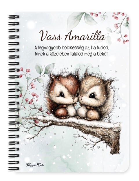 Névvel & Idézettel Kérhető Cuki téli mókuskák Füzet / Napló | Névre Szóló téli Ajándék & Személyes Jegyzetfüzet | nagyoncuki.hu Képzeld el azt a mosolyt és az ünnepi ihletet, amikor egy olyan füzetet tartasz a kezedben, amely nemcsak a teendőid és jegyzeteid rendszerezésére szolgál, hanem az ünnepi készülődés örömét is tükrözi! Ez a különleges, névre szóló, egyedi tervezésű Cuki téli mókus füzet a meghitt kuckózás, a kreativitás és az Erdei Varázs kollekció elragadó ünnepi darabja. Egy apró, szeretetteljes gesztus, amely a tervezést, a munkát és a jegyzetelést is fénnyel tölti meg, inspirációt adva minden sorhoz. Kiváló ajándék ötlet karácsonyra – legyen szó nőről, férfiról, vagy gyermekről – aki értékeli a személyes és lélekemelő meglepetéseket! Ezt a bájos füzetet mi magunk, a nagyoncuki.hu csapata terveztük, így biztos lehetsz benne, hogy egy igazán egyedi, magyar és személyre szabható ajándék darabbal leped meg szeretteidet vagy magadat! Miért válaszd ezt a személyre szabható a cuki téli mókus mintás füzetet? Egyedi Ünnepi Design: A füzet designja szeretettel készült, kifejezetten a mókus, a karácsony és az Erdei Varázs kollekció szerelmesei számára. Igazi téli ajándék különlegesség! Személyre szabható: Tedd még különlegesebbé az ajándékot a megajándékozott nevével! Egy igazán névre szóló füzet élmény, ami azt üzeni: "Ez csak a tied, tervezd meg benne a csodát!". Praktikus és Minőségi: A füzet két méretben (A5 és A6) elérhető. A strapabíró spirálkötés és a 60 minőségi, vonalas lap (120 oldal) gondoskodik a kényelmes használatról. Extra Meglepetés: Minden füzethez egy ajándék post-it szett is jár, hogy a legfontosabb gondolatok mindig szem előtt lehessenek. Tökéletes Ajándék Karácsonyra: Legyen szó Mikulásról, téli meglepetésről, ez a névvel ellátott füzet mindig telitalálat! Kinek ideális ajándék ez a cuki téli mókus mintás füzet? Mókus Rajongóknak és a Készülődés Kedvelőinek: Mindenkinek, aki az állatokat, az ünnepet és a bájos, Erdei Varázs stílus rajongója. A Tervezés és Naplóírás Kedvelőinek:Akik szeretnék rendszerezni a gondolataikat, ajándéklistájukat egy szép téli jegyzetfüzetben. Egyedi és személyes ajándékot keresőknek: Ha valami igazán különlegeset és névre szólót szeretnél adni. Hol használhatod ezt a cuki téli mókus mintás füzetet: téli Készülődés: Menü, ajándéklista, vendéglista írására Otthon: Naplóírásra, jegyzetelésre, receptek gyűjtésére vagy ünnepi emlékek, élmények rögzítésére. Irodában/Suliban: Jegyzeteléshez, határidők rögzítéséhez – hogy az ünnepi hangulat a munkába is elkísérjen. Termékjellemzők: Méretek: Választható A5 (kb. 13,5 cm x 21 cm) vagy A6 (kb. 10,5 cm x 14,5 cm) Borító: Személyre szabható névvel és/vagy egyedi idézettel, matt felülettel Belső: Kb. 60 csíkos lap (120 oldal), tetején "memo" és "Subject" segédlettel Kötés: Praktikus és tartós fekete fémspirál Extra: Ajándék post-it szett a füzet elején Egyedi felirattal is kérhető: Ne felejtsd el megadni a kért nevet és/vagy az egyedi idézetet a megjegyzés rovatban rendeléskor! Lepd meg a szerettedet, barátodat, kollégádat vagy saját magadat ezzel a bájos és személyre szabott füzettel! Rendeld meg most ezt az egyedi, névre szóló téli mókus füzetet, és vigyél egy kis extra téli örömet és inspirációt a mindennapokba!...mert mindenkinek jár egy kis cukiság. Ha tetszik neked ez az igazán aranyos dizájn, és tetszenek a személyre szabható ajándék ötleteink, nézd meg az Erdei varázs kollekciónkat is a nagyoncuki.hu-n!
