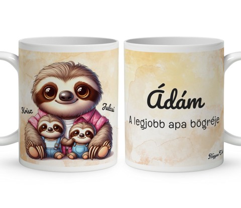 "Apa a mi biztonságos fánk." ️ Indítsd a reggelét a legszebb üzenettel! Ez a névre szóló Cuki Lajhár Apa bögre nemcsak a kávéját őrzi, hanem azt a hálát és szeretetet is, amit iránta éreztek. A két kis lajhár (a gyerkőcök) úgy csimpaszkodik rá, ahogy az életben is.