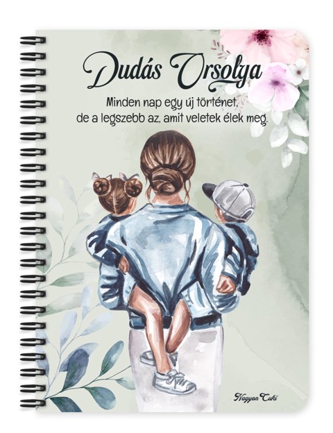 Névvel & Idézettel Kérhető Anya és a Gyerekek mintás Füzet | Névre Szóló Ajándék Anyáknak & Személyes Jegyzetfüzet | nagyoncuki.hu Gondoltál már arra, mennyi minden van egy Édesanya fejében? Bevásárlólisták, születésnapi dátumok, a gyerekek különórái, a karácsonyi menü, és ezer apró gondoskodó részlet, amivel a családot működteti. De hol van ebben a sok gondoskodásban Ő maga? Az Anyukák hajlamosak mindent és mindenkit maguk elé sorolni. Éppen ezért a legszebb ajándék, amit adhatsz neki, az a figyelem és a saját tér! Ezt az üzenetet zártuk ebbe a Családom Kollekciós Anya füzetbe. Ez a füzet nem csupán egy jegyzetfüzet. Ez egy főhajtás Anya előtt. Amikor kézbe veszi ezt a bájos, névre szóló füzetet, a rajta lévő kedves Anya figura emlékeztetni fogja: "Látjuk, mennyi mindent teszel értünk. Értékeljük a szeretetedet. Ez most a Te helyed, a Te gondolataidnak." A grafikán egy szeretnivaló, a Családom kollekcióra jellemző bájos anya karakter látható, aki a család melegét jelképezi. A személyre szabhatóság (név + esetleg egy rövid "Szeretünk, Anya" vagy "A legjobb Anya" felirat) pedig könnyekig ható ajándékká varázsolja ezt a hétköznapi tárgyat. Ezt a terméket mi, a nagyoncuki.hu csapata terveztük, hogy visszaadhassunk valamit abból a sok jóból, amit az édesanyák adnak a világnak. Miért válaszd ezt a személyre szabható szépséges anya mintás füzetet? Az "Énidő" szimbóluma: Ez a füzet csak az Övé. Nem a leckéé, nem a munkáé. Hanem az Ő álmaié, receptjeié vagy naplójáé. Érzelmi Elismerés: A minta és a névválasztás azt üzeni: "Te vagy a legfontosabb a Családban." Személyre szabható: Kérd az Édesanya keresztnevével, vagy "Anya", "Mama", "Nagyi" felirattal és ha akarod cseréld le az idézetet is! :) Praktikus és Minőségi: A füzet két méretben (A5 és A6) elérhető. A strapabíró spirálkötés és a 60 minőségi, vonalas lap (120 oldal) gondoskodik a kényelmes használatról. Extra Meglepetés: Minden füzethez egy ajándék post-it szett is jár, hogy a legfontosabb gondolatok mindig szem előtt lehessenek.Tökéletes Ajándék: Apák napjára, születésnapra, karácsonyra – vagy bármikor, amikor szeretnéd, hogy érezze a támogatásotokat. Tökéletes Ajándék: Anyák napjára, karácsonyra, születésnapra – vagy bármikor, amikor szeretnéd megköszönni, hogy Ő van nektek. Termékjellemzők: Méretek: Választható A5 (kb. 13,5 cm x 21 cm) vagy A6 (kb. 10,5 cm x 14,5 cm) Borító: Személyre szabható névvel és/vagy egyedi idézettel, matt felülettel Belső: Kb. 60 csíkos lap (120 oldal), tetején "memo" és "Subject" segédlettel Kötés: Praktikus és tartós fekete fémspirál Extra: Ajándék post-it szett a füzet elején Egyedi felirattal is kérhető: Ne felejtsd el megadni a kért nevet és/vagy az egyedi idézetet. Vidd haza ezt a szeretet-hordozó füzetet, és szerezz vele boldog pillanatokat a család lelkének! Ha tetszik neked ez az igazán aranyos dizájn, és tetszenek a személyre szabható ajándék ötleteink, nézd meg a Családom kollekciónkat is a nagyoncuki.hu-n!