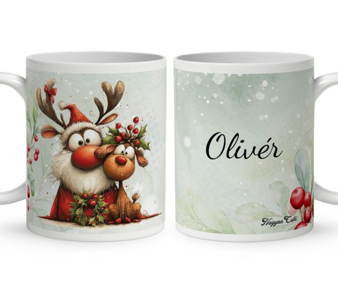 Indítsd a napot egy adag ünnepi varázslattal ezzel a névre szóló Cuki karácsonyi Mikulás és szarvas mintás bögrével! Tökéletes karácsonyi ajándék és mindenkinek, aki szereti a meghitt pillanatokat, a bájos erdei állatokat és a személyes meglepetéseket. Garantáltan mosolyt csal az arcodra, minden korty forró kávé, kakaó vagy tea után!...mert mindenkinek jár egy kis cukiság.