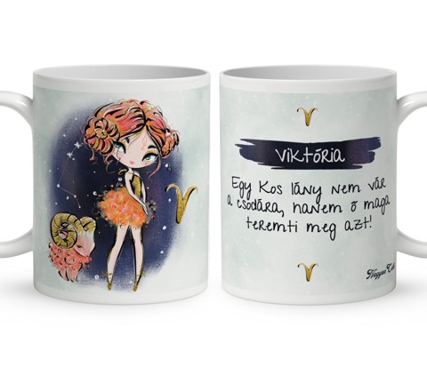 Személyre szabható - Vörös hajú Csini Kos lány mintás Zodiákus Bögre | Egyedi Horoszkópos Ajándék a Csillogás jegyében | nagyoncuki.hu Tudod, mi teszi igazán különlegessé a Kos hölgyeket? Az a hihetetlen bátorság, a végtelen energia és az a belső tűz, amivel minden céljukat elérik. Ők igazi vezetők, akik lelkesedésükkel mindenkit magukkal ragadnak, és nem félnek új utakra lépni. Egy Kos nő nem csak álmodozik a sikerről, hanem minden erejével tesz is érte. Ezt a vibráló, stílusos és „csili-vili” életérzést zártuk ebbe a Csini Kos lányos bögrébe. Ez nem egy egyszerű ajándéktárgy. Ez egy elismerő mosoly a reggeli kávé mellé. Amikor a tulajdonosa a kezébe veszi ezt a bögrét, és meglátja rajta a saját karakterét, a saját nevét vagy a kedvenc idézetét, tudni fogja:"Különleges vagyok, és valaki pontosan ilyennek szeret engem.". A legszebb módja annak, hogy elmondd neki: Ragyogj tovább, te csillaglány! Ezt a bájos bögrét mi magunk, a nagyoncuki.hu csapata terveztük, kifejezetten aa nőknek, akik imádják a stílust és a személyes figyelmességet. :) Miért válaszd ezt a személyre szabható Kos lányos bögrét? Mély Érzelmi Üzenet: Az igazi ajándék nem egy naptári napnak, hanem a személynek szól. Ez a bögre azt üzeni: „Ismerem a lelked apró csillogásait, és tudom, mi tesz téged igazán egyedivé.” A horoszkóp és a személyre szabott karakter kombinációja a legszebb módja annak, hogy kifejezd: figyelsz a másikra, és fontos neked az, aki ő valójában. Hiszen az ajándékok a szeretet és a törődés hordozói az év minden napján. Teljesen Személyre szabható: A paramétereknél kiválaszthatod a lány bőrszínét és szemszínét is, a bögre másik oldalát pedig névvel és egyedi idézettel teheted megismételhetetlenné. Minőségi anyag: A bögre tartós kerámiából készült, így hosszú ideig megőrzi a rá nyomtatott kedves mintát és az élénk színeit. Praktikus ajándék: A bögre nem csupán egy dísztárgy, hanem egy hasznos és a mindennapokban is örömmel használt ajándék, ami mindig emlékeztet a figyelmességedre és a szeretet erejére. Tökéletes Ajándék: Születésnapra, névnapra, barátnőnek, testvérnek vagy akár saját magadnak – mert megérdemled a kényeztetés! Termékjellemzők: Űrtartalom: 3 dl (kb. 300-330ml) fehér kerámia bögre, kívül mintával Anyag: 100% prémium minőségű kerámia Kezelés: Mosogatógépben mosható és mikrohullámú sütőben is használható a hosszan tartó minta érdekében. Személyre szabás: Választható bőrszín, szemszín + Névvel és idézettel kérhető. Elérhető szín: Klasszikus fehér, amelyen a minta gyönyörűen érvényesül.