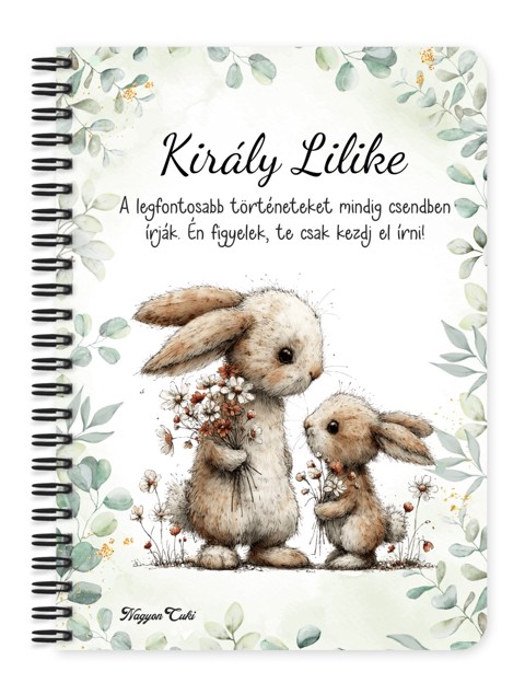 Névvel & Idézettel Kérhető - Anya és a kicsi nyuszikája mintás Füzet / Napló | Névre Szóló Ajándék & Személyes Jegyzetfüzet | nagyoncuki.hu Gondoltál már arra, milyen jó érzés tavasszal tiszta lappal indulni? Ahogy a természet leveti a téli szürkeséget, bennünk is felébred a vágy az új célok, a friss gondolatok és a kreatív tervek iránt. Ezt az inspiráló, ébredező energiát zártuk bele ebbe a személyre szabható Cuki Tavaszi erdei állatos füzetbe, az Erdei Varázs kollekciónk legújabb darabjába! Ez a füzet nem csupán üres lapok gyűjteménye. Ez egy biztonságos hely az új kezdeteknek. A borítón szimatoló, téli álmából ébredő borz arra emlékeztet: itt az idő megvalósítani azokat az álmokat, amiket eddig csak dédelgettél! Egy gyönyörű, személyes ajándék, ami a szeretet hordozójaként azt üzeni: "Hiszek a terveidben, vágj bele!" Ezt a bájos füzetet mi magunk, a nagyoncuki.hu csapata terveztük, így biztos lehetsz benne, hogy egy igazán egyedi, magyar és személyre szabható ajándék darabbal leped meg szeretteidet vagy magadat! Miért válaszd ezt a személyre szabható tavaszi nyuszi mintás füzetet? Kettős Személyre Szabás: Tedd igazán egyedivé! A borítóra nemcsak a megajándékozott nevét kérheted, hanem egy saját, motiváló idézetet is. Így válik egy egyszerű tárgyból féltve őrzött emlék. Minőségi Társ a Mindennapokban: Legyen szó munkahelyi teendőkről, egyetemi jegyzetekről vagy hálanapló írásáról, ez a füzet bírni fogja a tempót Praktikus és Minőségi: A füzet két méretben (A5 és A6) elérhető. A strapabíró spirálkötés és a 60 minőségi, vonalas lap (120 oldal) gondoskodik a kényelmes használatról. Extra Meglepetés: Minden füzethez egy ajándék post-it szett is jár, hogy a legfontosabb gondolatok mindig szem előtt lehessenek. Tökéletes Tavaszi Ajándék: Keresve sem találhatnál szívhez szólóbb meglepetést Nőnapra, Húsvétra, Anyák napjára, vagy egy új iskola, munkahely kezdésekor! Kinek ideális ajándék ez az aranyos nyuszi mintás füzet? A Nagy Tervezőknek és Álmodozóknak: Akik imádnak listákat írni, célokat kitűzni, és szeretik, ha mindez egy gyönyörű helyen van összegyűjtve. Személyes Ajándékot Keresőknek: Ha valami igazán egyedit, figyelmeset szeretnél adni, ami garantáltan örömkönnyeket csal a szemekbe. Termékjellemzők: Méretek: Választható A5 (kb. 13,5 cm x 21 cm) vagy A6 (kb. 10,5 cm x 14,5 cm) Borító: Személyre szabható névvel és/vagy egyedi idézettel, matt felülettel Belső: Kb. 60 csíkos lap (120 oldal), tetején "memo" és "Subject" segédlettel Kötés: Praktikus és tartós fekete fémspirál Extra: Ajándék post-it szett a füzet elején Egyedi felirattal is kérhető: Ne felejtsd el megadni a kért nevet és/vagy az egyedi idézetet a megjegyzés rovatban rendeléskor! Vidd haza a tavasz frissességét! Rendeld meg most ezt az egyedi, névre szóló Cuki Tavaszi nyuszi mintás füzetet, és adj teret a legszebb gondolatoknak...mert mindenkinek jár egy kis cukiság. Ha tetszik neked ez az igazán aranyos dizájn, és tetszenek a személyre szabható ajándék ötleteink, nézd meg az Erdei varázs kollekciónkat is a nagyoncuki.hu-n!