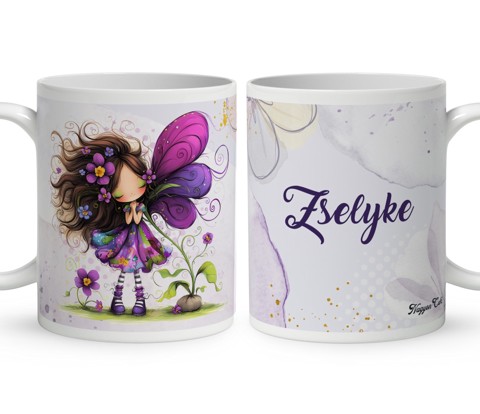 Névvel kérhető - Cuki ibolya virágos tündér mintás bögre - otthon & életmód - konyhafelszerelés, tálalás - tálalás - bögre & csésze - Meska.hu