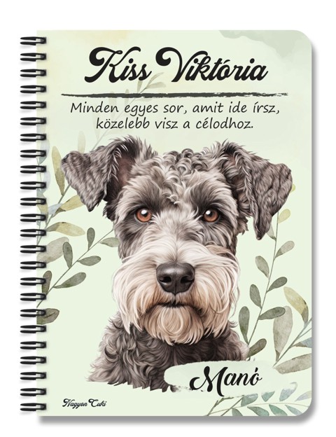 Névvel & Idézettel Kérhető - Pumi portré kutyás Füzet | Egyedi Ajándék Kutyásoknak & Személyre Szabható Kutyás Ajándék | nagyoncuki.h Minden gazdi tudja, hogy a saját kutyusa a legszebb, legokosabb és legszerethetőbb a világon. Mostantól ezt a büszkeséget és szeretetet magaddal viheted mindenhová ezzel a stílusos, személyre szabható füzettel, amit kedvenc négylábúd portréja díszít. Ez a füzet nemcsak egy egyszerű jegyzetfüzet, hanem egy igazi tisztelgés a gazdi és kutyája közötti különleges kötelék előtt. A portré hűen és szeretettel ragadja meg a Pumi fajta jellegzetes báját és karakterét. Tökéletes választás, ha szeretnéd a legfontosabb jegyzeteidet, terveidet vagy a kutyás kalandjaitok emlékeit egy olyan füzetbe írni, ami igazán közel áll a szívedhez. Legyen szó a kutyaovi emlékeiről, a tréning jegyzeteiről vagy a napi teendőkről, ez a kutyaportrés füzet garantáltan a kedvenced lesz.